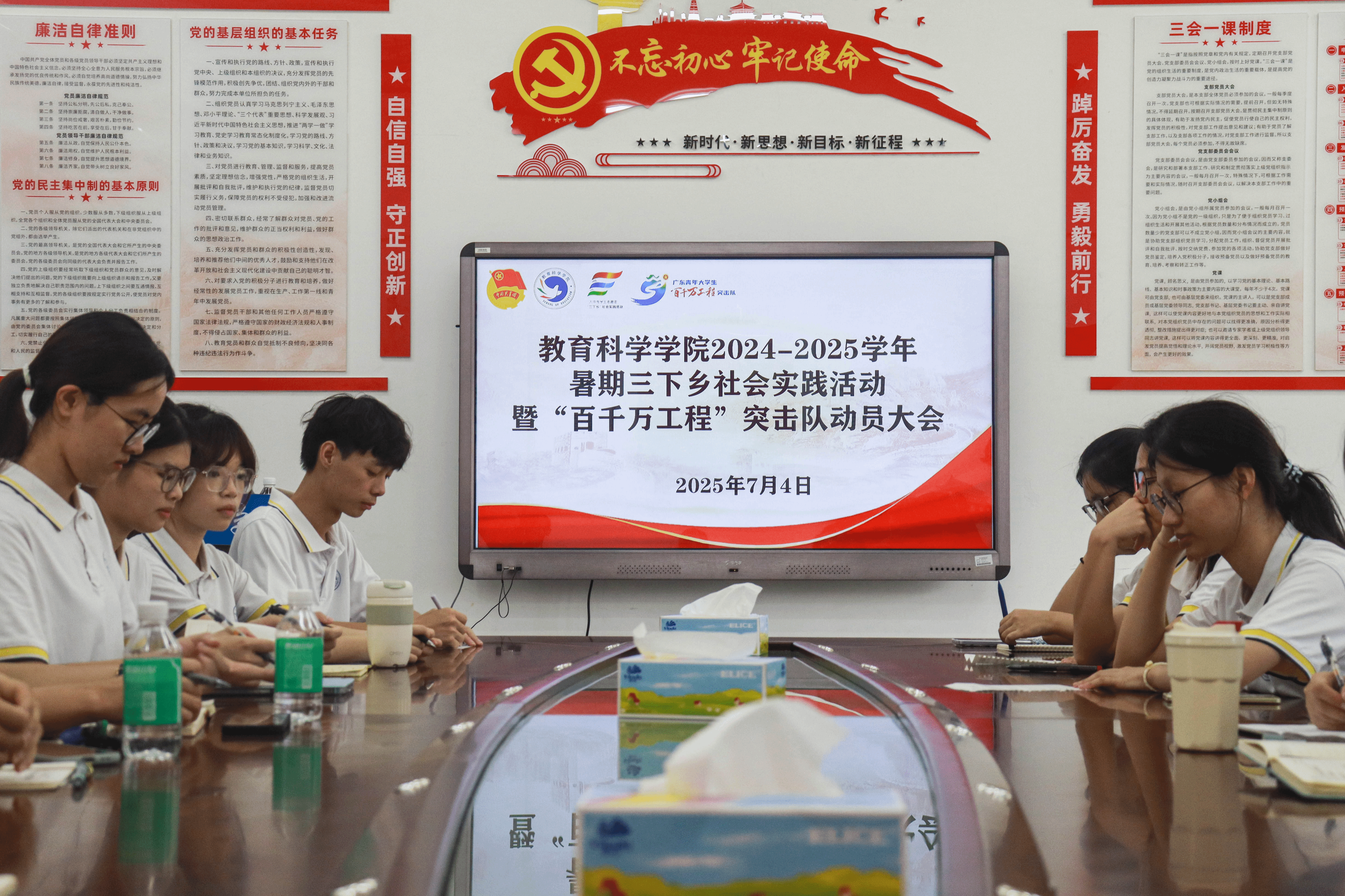 (图为教育科学乐竞官网暑期“三下乡”动员大会的照片 潘燕华摄)