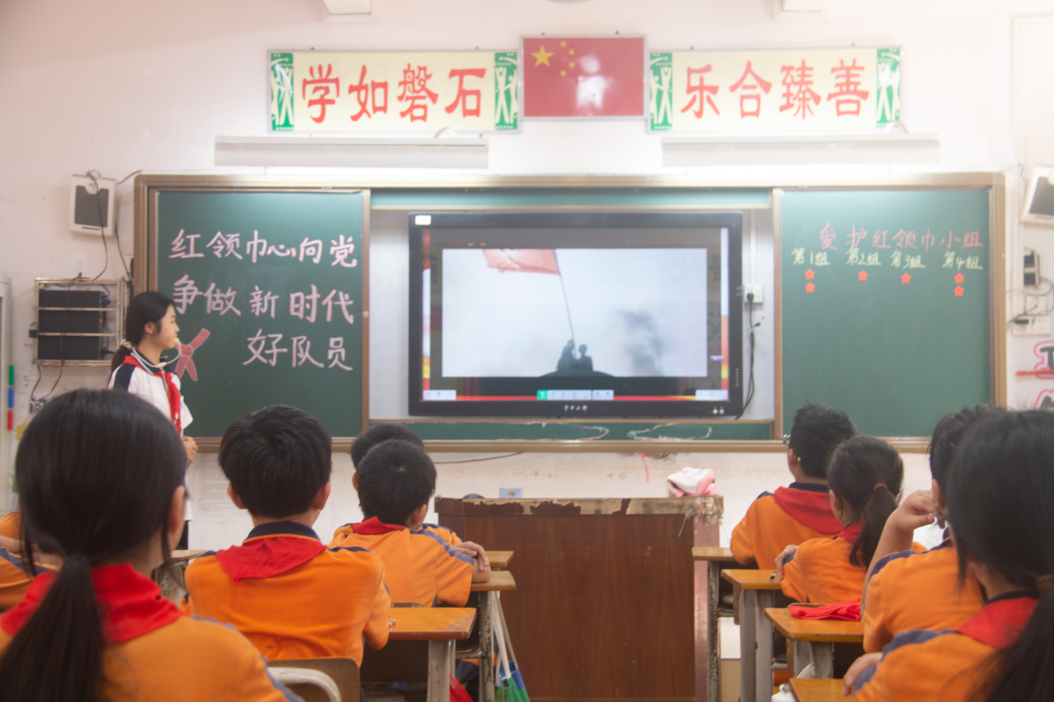 当天下午,实践团的志愿者们开设了《红领巾心向党,争做新时代好队员》主题班会。志愿者带领学生们通过歌唱红领巾、认识红领巾、致敬红领巾、爱护红领巾和逐梦红领巾等形式,引导马岗小学的学生争做新时代好队员,为红领巾增光添彩。
