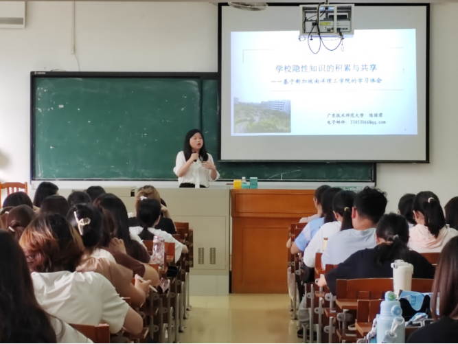 近日,教育科学乐竞官网举办“学校隐性知识的积累与共享”专题讲座。本次讲座特邀广东技术师范大学陈丽君教授主讲,应用心理学专业系主任周彩虹,教师岑延远、付媛姝以及2022级应用心理学全体同学参加。