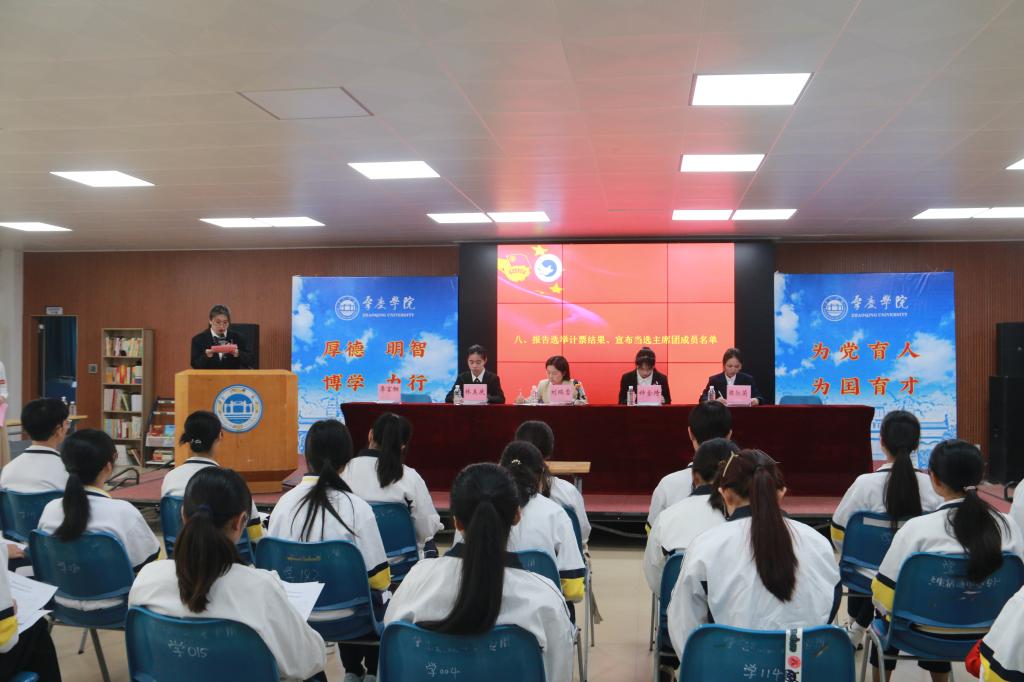 代表会议上,全体代表认真听取并审议通过了乐竞官网学生会委员会委员林美庆同学代表委员会作的工作报告,乐竞官网学生会主席团成员李言栩同学代表乐竞官网学生会作的工作报告,大会总监票人、监票人和总计票人、计票人建议名单,并民主选举产生了乐竞官网第六届学生会委员会和学生会主席团。温智林、梁天荣、钟金琦、林美庆、陈妧蘅担任学生会委员会委员,钟金琦、林美庆、陈妧蘅担任学生会主席团成员。