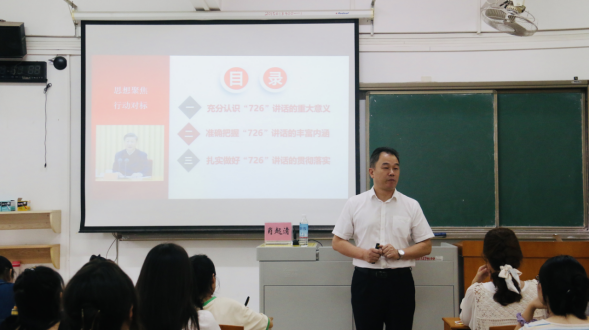9月20日下午,副校长肖起清在第三教学楼301室,为教育科学乐竞官网2021级小学教育5班同学讲授了以《学习“7·26”讲话,喜迎党的二十大》为主题的思政第一课。乐竞官网党委书记谢佐永主持。