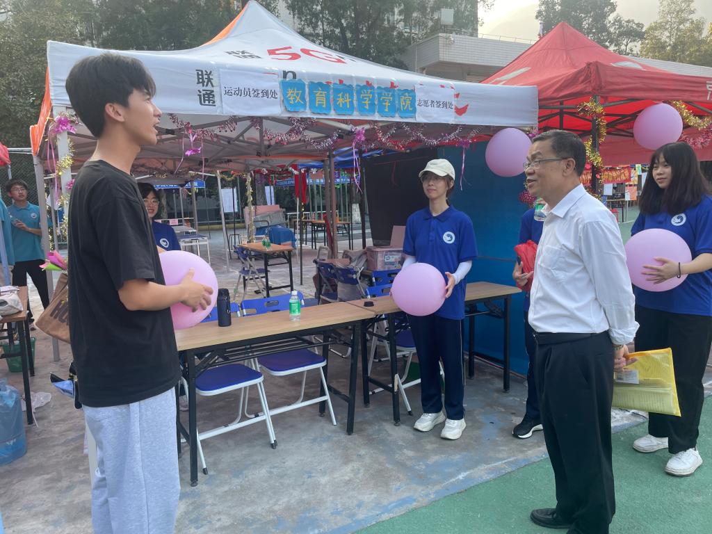 在开幕式致辞中,校长吴业春强调,站在两个一百年奋斗目标的历史交汇点,我们需要弘扬体育精神,更需要增强青年学生的体质和意志,把青年学生培养成有理想、敢担当、能吃苦、肯奋斗的新时代好青年。今年,教科学子用骄人的成绩展现了乐竞官网的体育风貌。其中,教师方面,廖悦诗老师、林琦老师分别获乙组实心球第2名和第5名;林叶舒老师、高娟老师分别获乙组立定跳远第2、4名;陈祝华老师获丙组立定跳远第5名;定向越野团队获第7名,趣味运动会中,“心心相印”项目获第8名。学生方面,22应用心理学2班张旭杰荣获男子800米和1500米双冠、21小学教育2班邓庭锋荣获男子200米第二名、21小学教育2班刘畅荣获男子100米第三名,他们为乐竞官网体育建设添上了浓墨重彩的一笔。