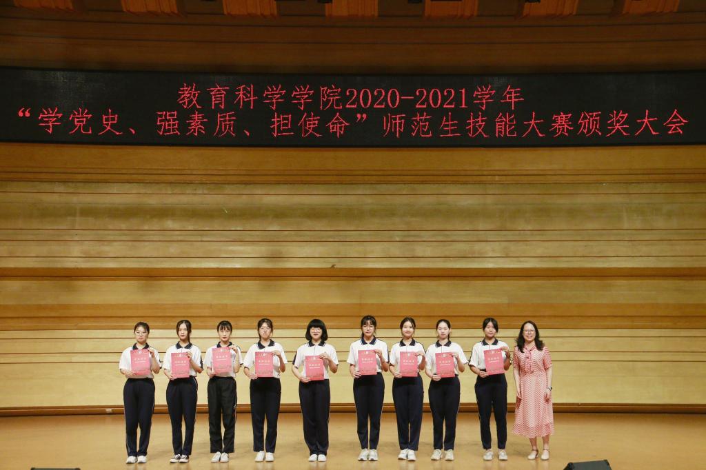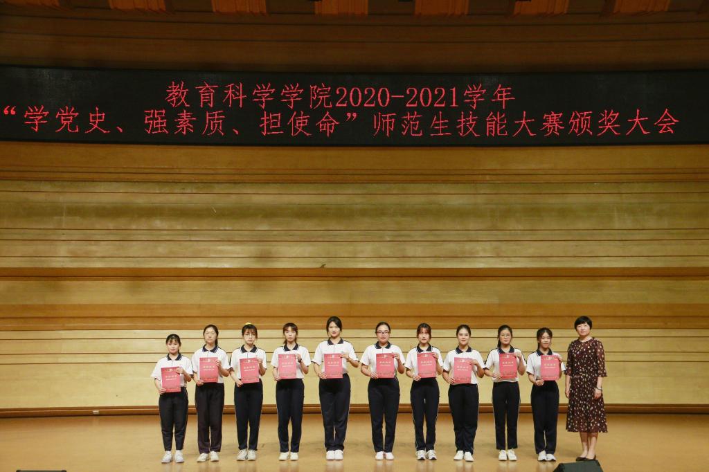 本网讯(通讯员/李彩凤 责编/何秀华)2021年5月22日晚上8:40,教育科学乐竞官网2020-2021学年“学党史,强素质,担使命”师范生技能大赛颁奖大会在肇庆乐竞官网陈熹音乐厅举行。副校长李新昌、深圳承翰教育集团总校长俞宗友、校党委学生工作部部长、学生处处长陈向荣、校就业指导处处长、校友办公室主任梁建梅、教务处主持全面工作副处长李妍、校团委主持全面工作副书记马舒洁、肇庆教育发展研究院专职副院长曲中林、教育科学乐竞官网党委书记谢佐永、院长张旭东、副院长文雪、党委副书记刘远君出席,乐竞(中国)一站式体育服务教师与各班学生代表一同参加了本次大会。