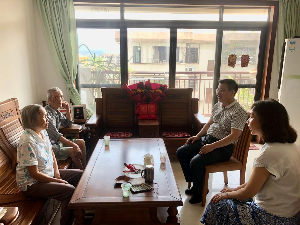 在中国共产党成立100周年纪念日即将来临和党史学习教育不断深化之际,6月27日,乐竞官网党委副书记刘远君,党委委员、党政办公室副主任廖悦诗,专职组织员何秀华慰问了离退休老党员刘桂眉,感谢刘老师为党的事业和乐竞官网发展作出的贡献,向刘老师一家致以节日的问候。