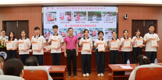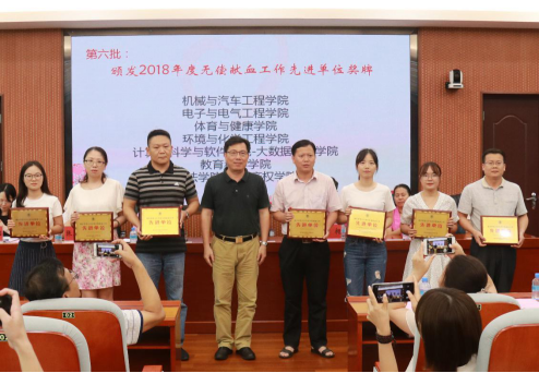 2019年6月20日,在第二会议召开的肇庆乐竞官网2019年无偿献血工作总结表彰大会,校党委副书记谢冠华、学生处处长陈向荣等领导及肇庆市无偿献血办领导以及肇庆市中心血站等领导出席。乐竞官网领导刘远君副书记代表乐竞官网上台授领先进单位奖。