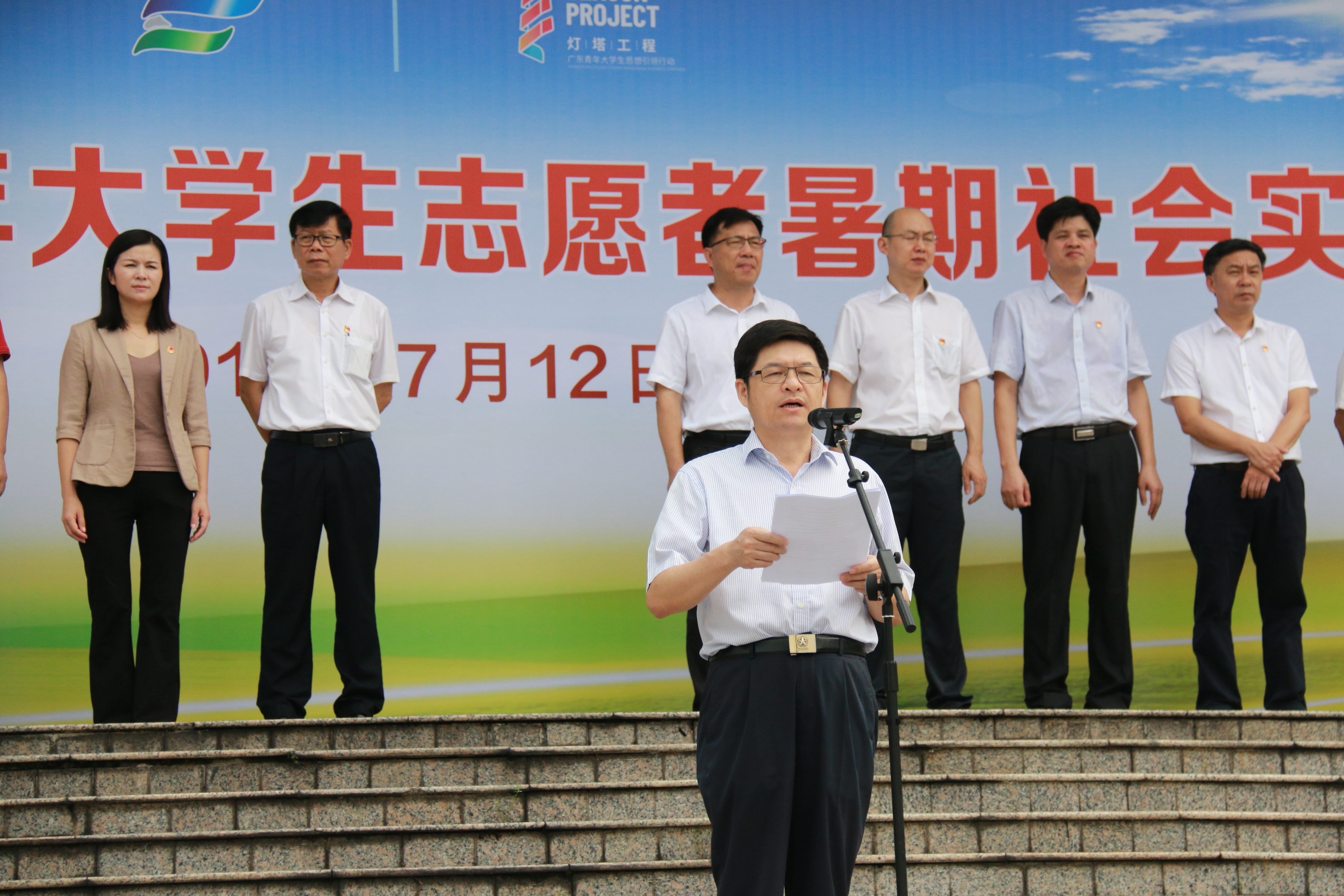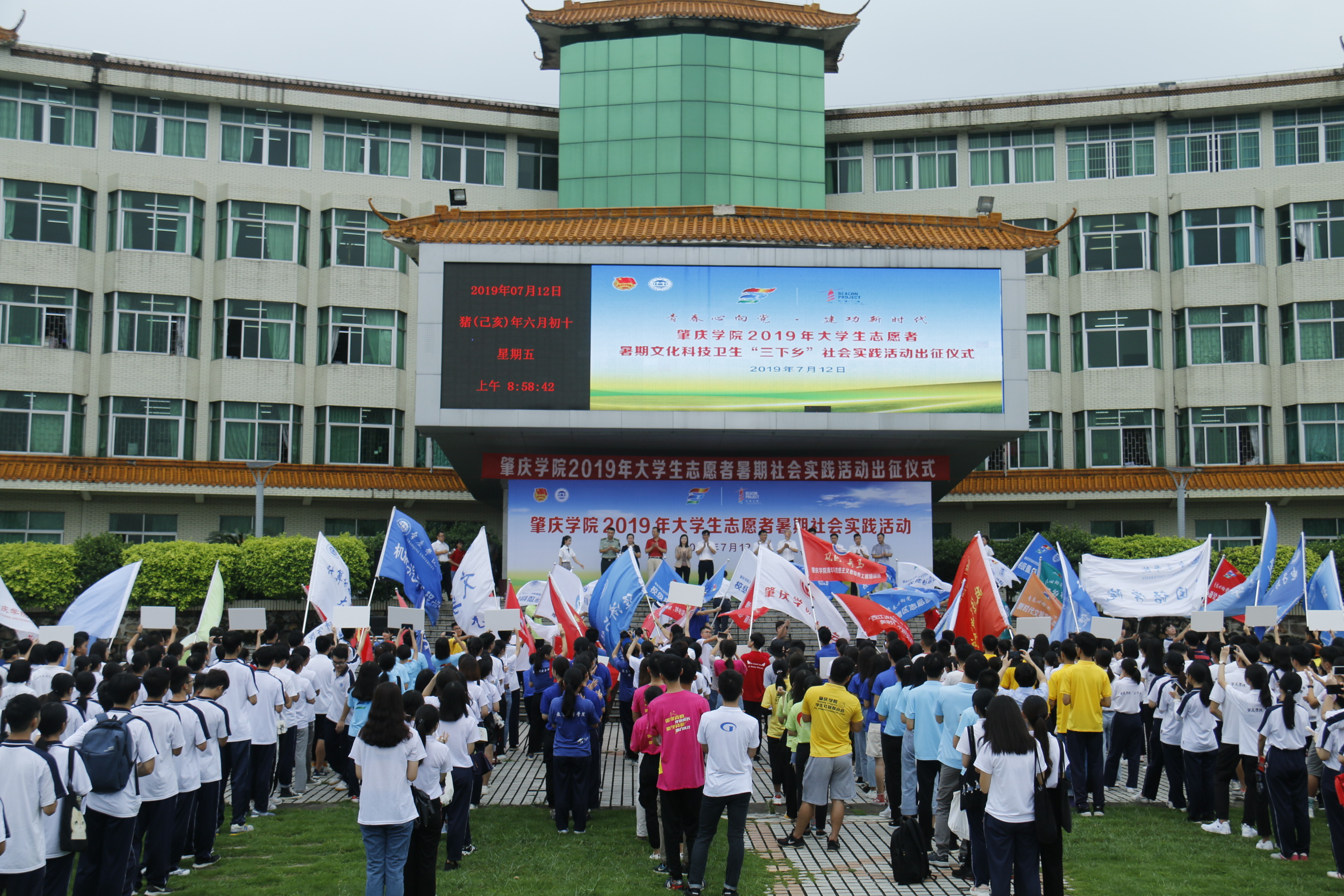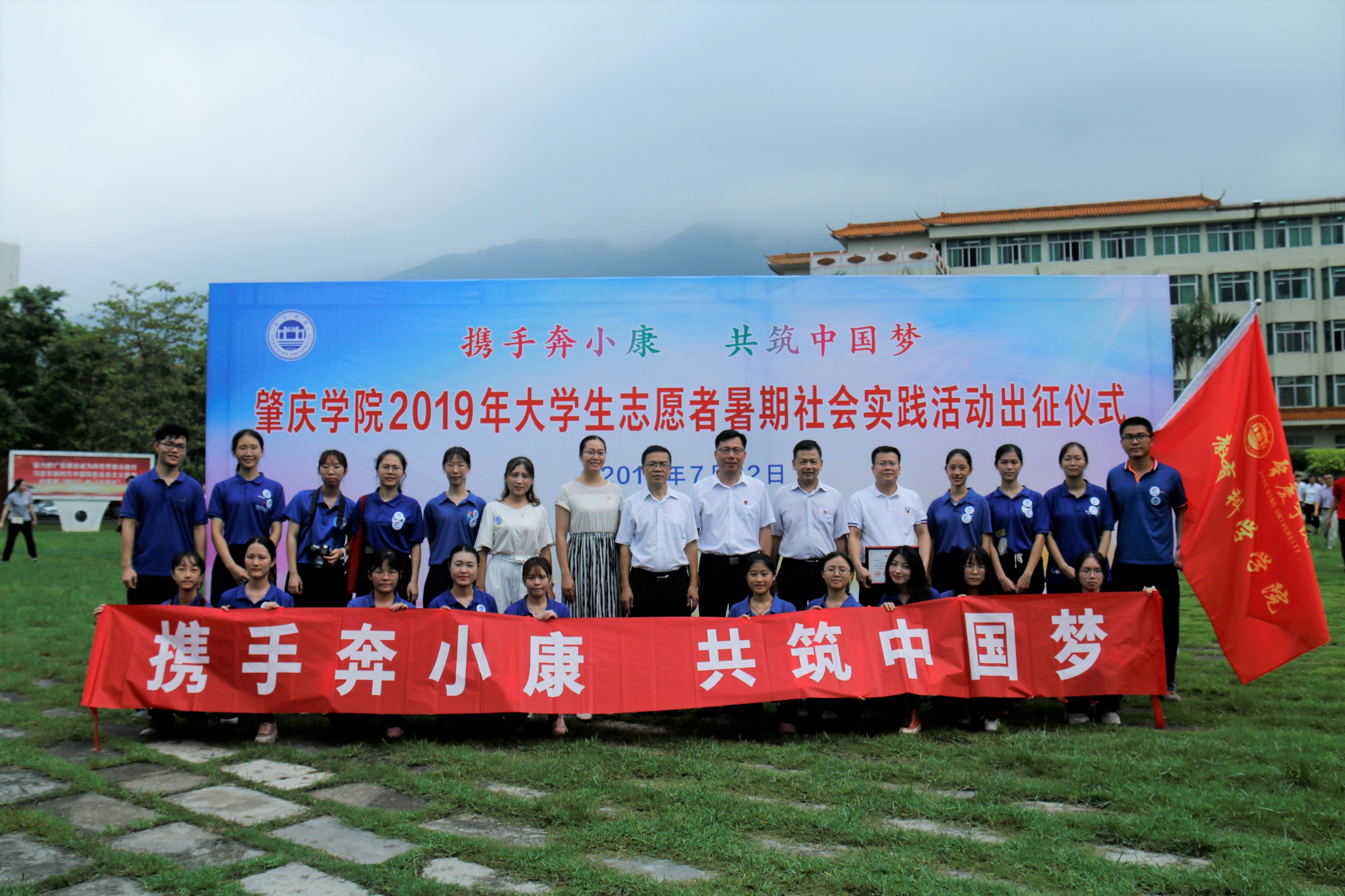 本网讯(通讯员 张立婷)为纪念建国70周年、建党98周年,我校围绕“青春心向党,建功新时代”和“携手奔小康,共筑中国梦”两大主题开展大学生暑期“三下乡”志愿活动。2019年7月12日上午,我校在国砚广场隆重举行了大学生志愿者暑期文化科技卫生“三下乡”社会实践活动出征仪式。学校党委书记曾桓松、党委副书记谢冠华、肇庆市团委书记唐莹等领导和各二级乐竞官网师生代表出席了本次仪式。本次出征仪式由校团委书记陈前主持。