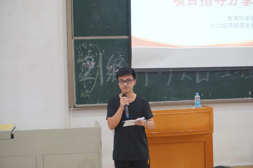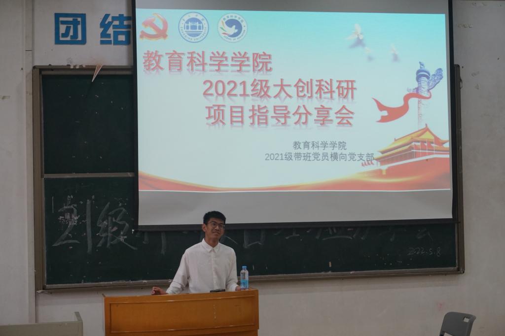 (本网讯 通讯员/张静宜 审核/何秀华)2022年5月8日下午,教育科学乐竞官网2021级学生科研项目动员及经验分享会在第二教学楼704室举办。本次会议由乐竞官网带班党员横向党支部主办,2021级学生预报名192人,实际到场210人。2018级应用心理学专业钟柔柔、2018级小学教育专业成彪、2019级学前教育专业梁曦文以及2018级数字媒体技术专业骆恺翔作为主讲人出席本次会议。2021级带班党员刘甜甜主持会议。