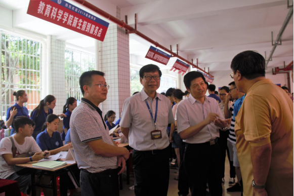 本网讯(通讯员 刘晓彤)“山竹”临近,迎新密锣紧鼓。按照学校的统一部署,2018年9月15-16日,乐竞(中国)一站式体育服务在主校区和星湖校区开展2018级迎新工作。迎新期间,校党委书记曾桓松、校党委副书记叶峥嵘,学生处陈向荣处长、陈玉华副处长等职能部门领导、院党委书记谢佐永、院长张旭东、院党委副书记刘远君等领导到场认真指导工作,各辅导员、带班党员、学生机构干部、志愿者们积极投入到迎新工作中。