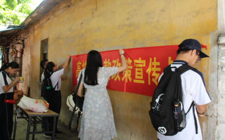 在本次宣传与调研活动中,首先,我们让两名成员在村子中心作定点宣传,并在醒目位置张贴宣传横幅。随后,其余成员采取分组走访的形式对五经里的村民进行助贷宣传和问卷调查。在指导老师的带领下,宣传小组走访了经济困难家庭,通过问卷调查和现场答疑的形式对家长和学生进行资助政策的宣传、讲解。宣传调研工作的开展,也进一步增进了五经里的村民对助学贷款政策的了解,有助于国家出台的相关资助政策能够更加有效地落实。