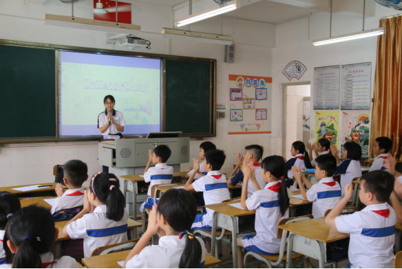 (肇庆市端州区肇庆市第七小学志愿者协助学生学习《幸福拍拍手》歌曲)