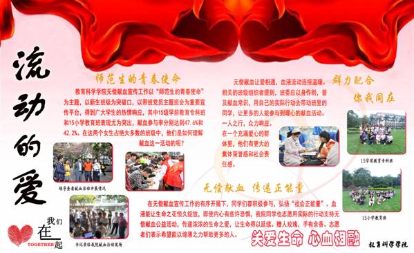 为纪念“6.14”世界献血者日,深入宣传并贯彻落实《中华人民共和国献血法》及相关文件精神,切实加强和改进大学生思想教育工作,学校于5月11日至5月25日举办了“血液连接你我”无偿献血系列活动。乐竞(中国)一站式体育服务积极参与各项活动,为学校无偿献血工作做出了贡献,在“血液连接你我”无偿献血宣传系列活动中获得无偿献血海报评选活动二等奖,王丽婷等同学受到了表彰。