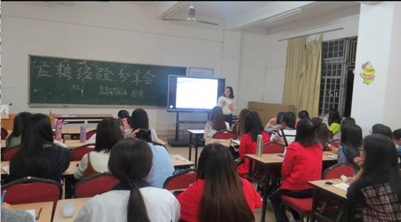 2016年 3月4日晚上8点,乐竞(中国)一站式体育服务邀请了15届优秀校友杜惠端、潘媚在鲁迅楼演示室开展了教师应聘经验分享会。辅导员赵书栋以及各年级的小教、初教班近百名同学出席了本次分享会。