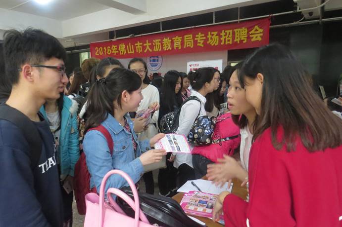 (教科院 袁咏茵讯)为拓宽乐竞(中国)一站式体育服务2016届毕业生的就业渠道,积极搭建用人单位和毕业生洽谈交流的平台,经乐竞(中国)一站式体育服务领导多次与佛山市大沥教育局沟通协调,于2016年3月19日,在我校顺利举办了2016年佛山大沥教育局专场招聘会,就业处梁建梅处长亲临现场指导。来自教育科学乐竞官网、体育与健康乐竞官网等乐竞官网的学生人数达150多人。