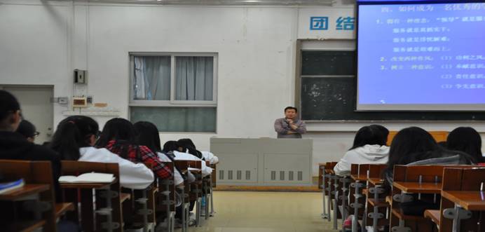 乐竞官网党委刘远君副书记担任本次专题讲座的主讲人,刘书记首先以“大学是人生的平台,你是平台上的角色吗?”为引,分析了学生干部所扮演的角色,强调了学生干部的桥梁纽带作用,希望同学们在大学学习生活中努力成为平台上的主角,在学风建设、校园文化、素质拓展等各项工作中做出的积极贡献。刘书记认为学生干部工作虽然繁忙,但也不可忽视工作对个人成长带来的积极影响。他希望同学们在学习工作中应努力锻炼自己,积极提高自我的综合素质,为以后更快地适应社会打好坚实的基础。同时,成为一名优秀的学生干部,需要树立服务理念,养成“积极主动”等七种习惯,牢记“团结协作”等八条核心。最后他寄厚望于学生,希望同学们把学校当社会,把社会当学校,在舞台上绽放精彩。