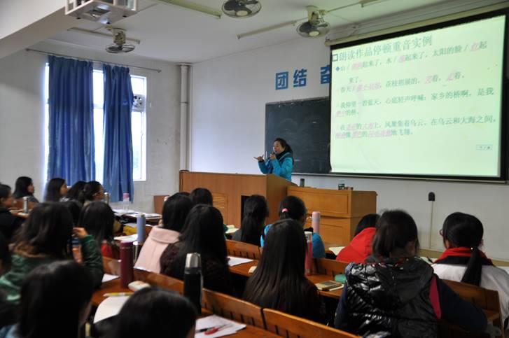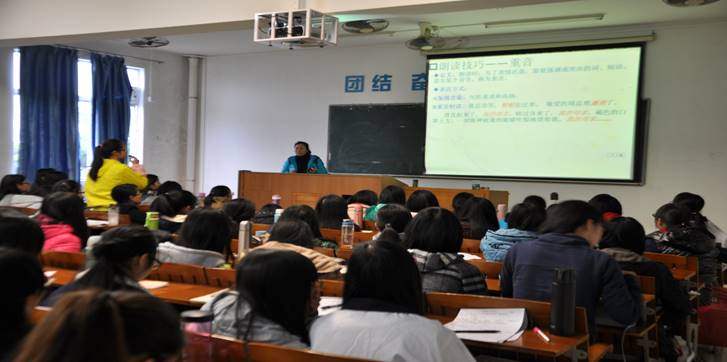 本网讯(记者马晓玲 凌小媛)12月9日,乐竞(中国)一站式体育服务邀请了端城小学特级教师凌琳在第二教学楼503室开展了小学语文教学法之朗读技巧讲座。乐竞(中国)一站式体育服务廖洁敏老师、慕容勋老师出席了本次讲座。14小学教育班、14初等教育班和13小学教育班的同学也参加了讲座。