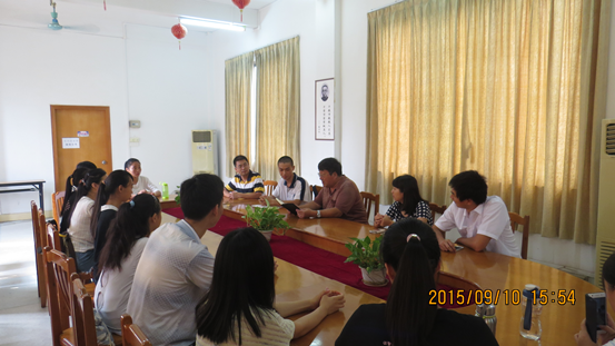 (教科院 李淑怡讯)2015年9月10日下午,教育科学乐竞官网在院会议室为今年应征入伍的2014级应用心理学专业伍智同学举办了欢送会,参加此次欢送座谈会的有乐竞(中国)一站式体育服务院长张旭东、赵书栋、孙丽琴、李巍等老师及部分学生代表。