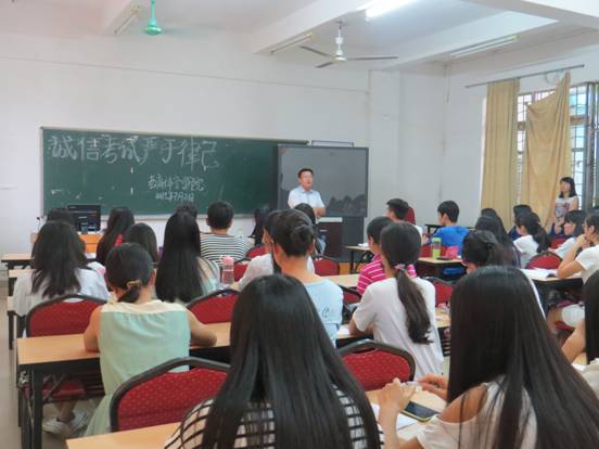 (教科院讯)在期末考试来临之际,为促进学风建设,严肃考风考纪,教育科学乐竞官网于7月8日下午在乐竞官网演示室开展了以“诚信考试,严于律己”为主题的考风考纪倡议及宣誓大会。教育科学乐竞官网党委副书记刘远君、辅导员、各班班干代表及学生代表共60余人参加了大会。