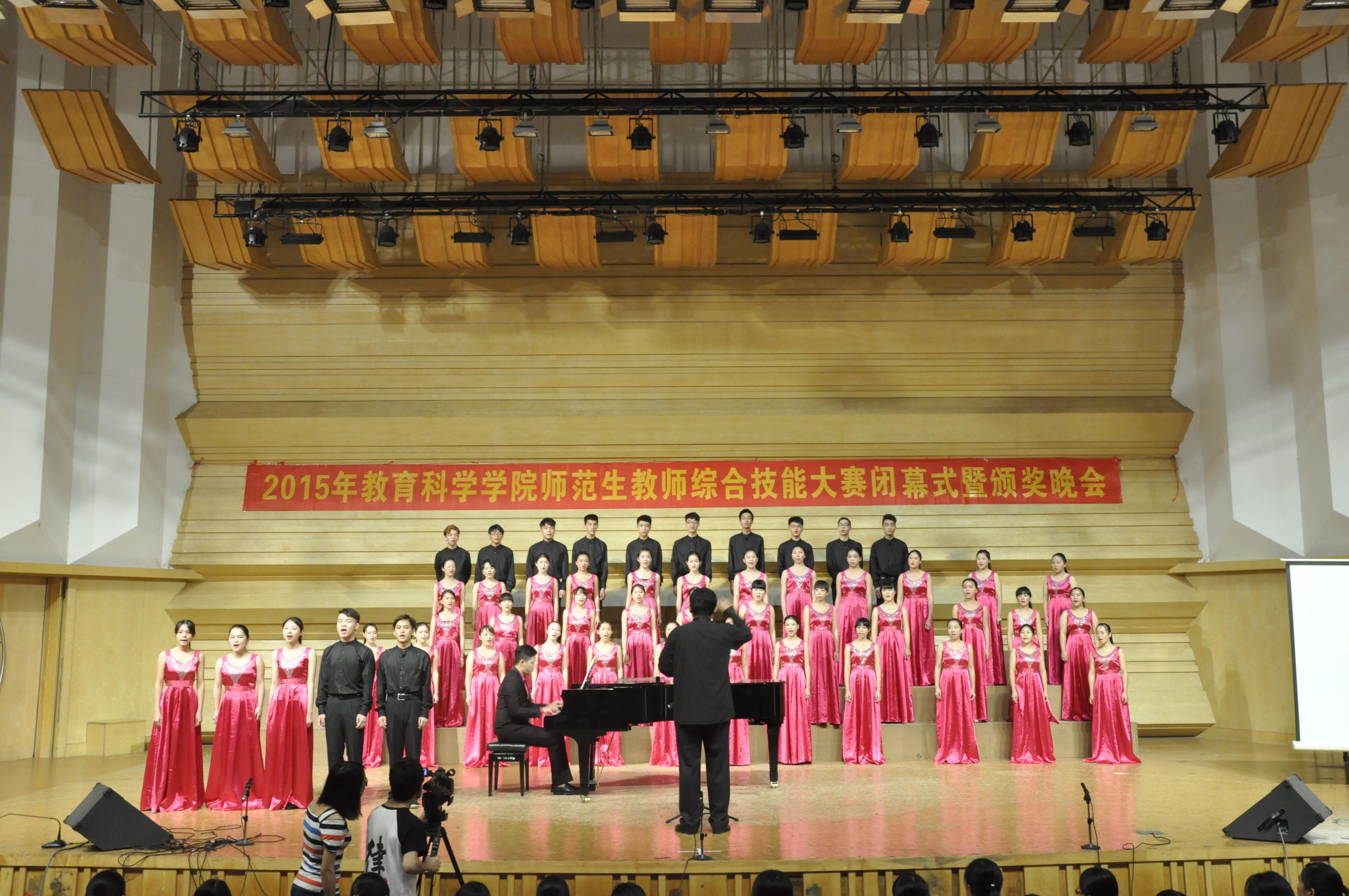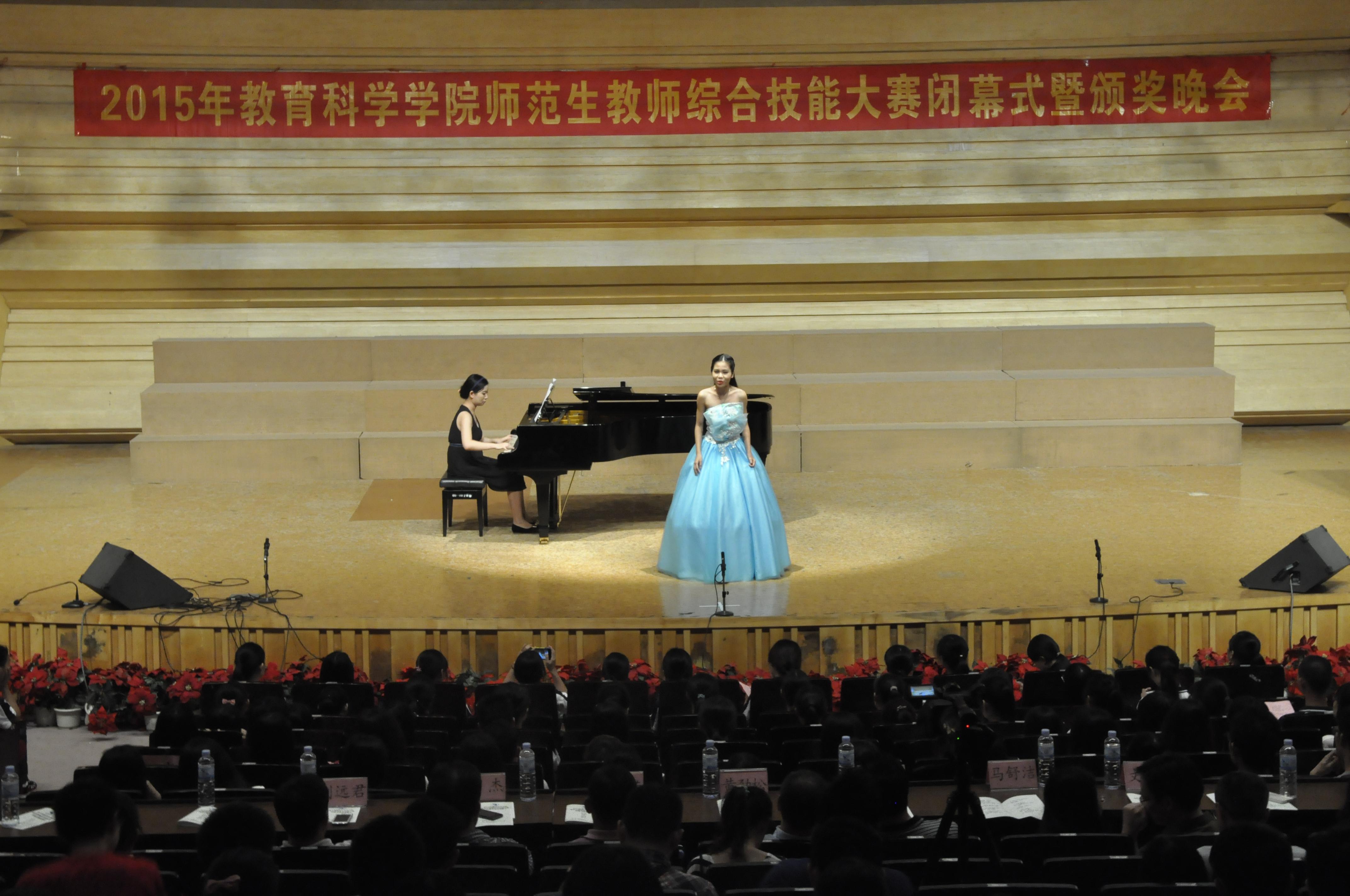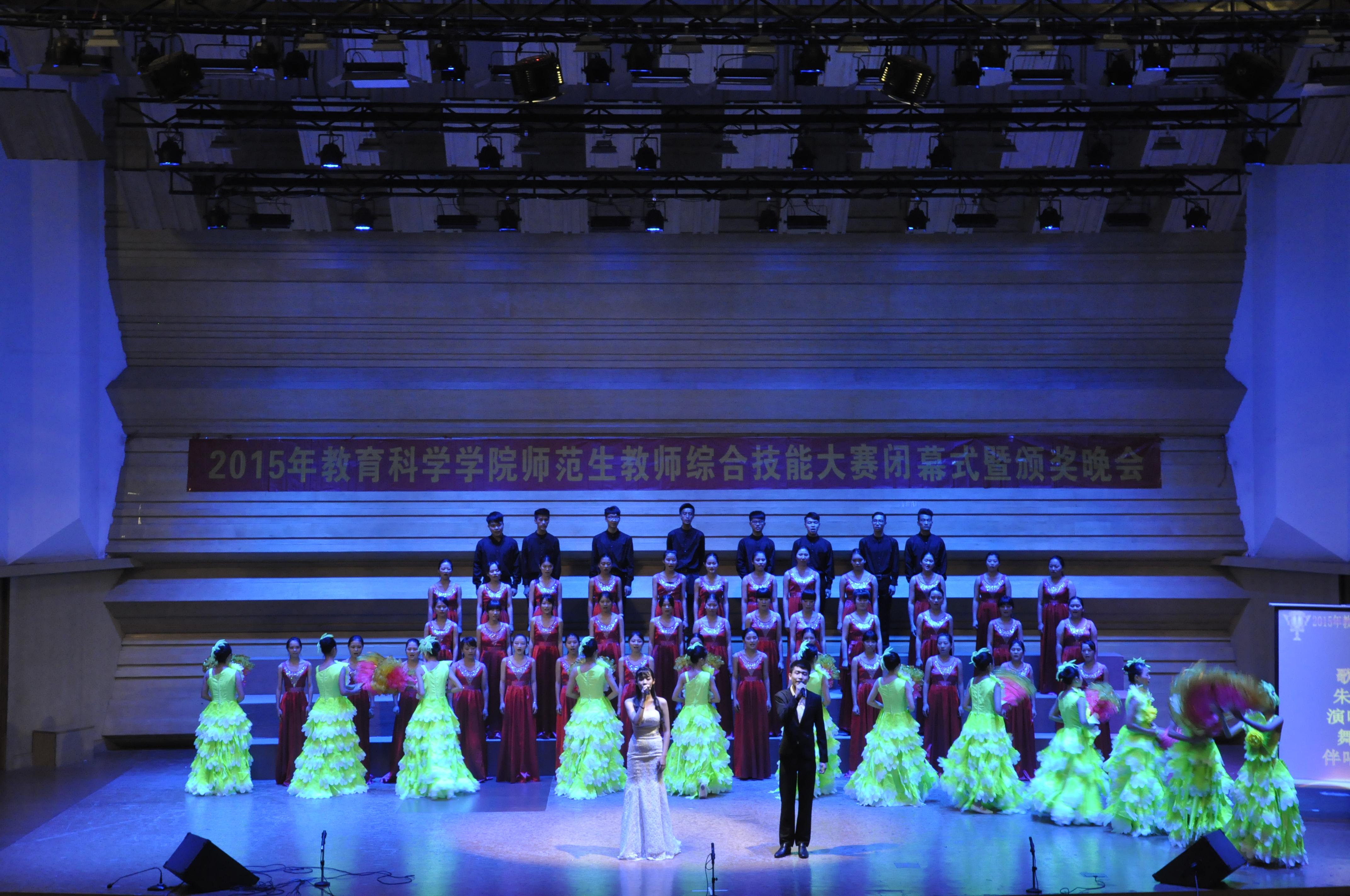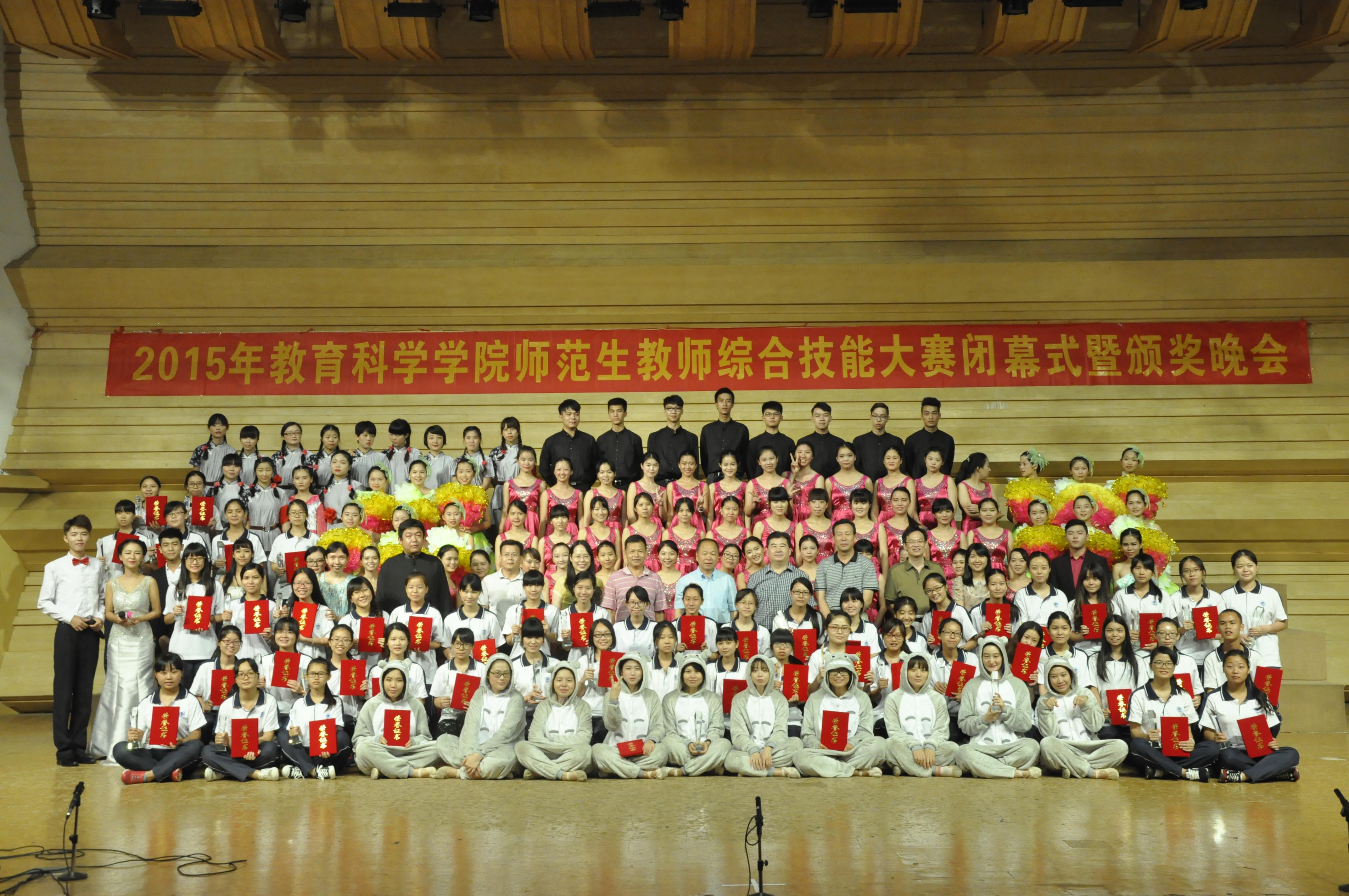 本网讯(通讯员 许晓虹 邓丽桢)5月30 日晚,2015年教育科学乐竞官网师范生综合技能大赛闭幕式暨颁奖晚会在陈熹音乐厅隆重举行,校党委副书记、纪委书记黄劲松,校党委委员、教务处处长丁孝智,校学生工作部、学生工作处处长陈向荣,校团委副书记马舒洁,教育科学乐竞官网党政领导和学生代表共400多人出席了颁奖晚会。