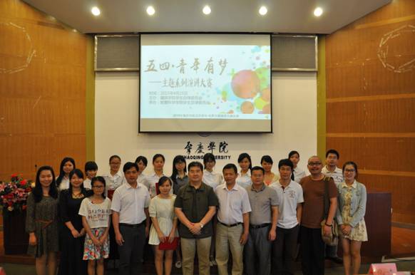 (教科院 郑敏丹讯)为纪念“五四”运动96周年,弘扬“爱国、进步、民主、科学”之五四精神,引导同学们深刻理解习近平总书记提出的中国梦的内涵,树立社会主义核心价值观,做到心中有梦,敢于追梦,并勤于圆梦,展现肇庆乐竞官网学子之风采,传递青春正能量,由校学生处律委会主办,教育科学乐竞官网律委分会承办历时一个月的肇庆乐竞官网2015年“五四•青年有梦”主题系列活动于4月25日在图书馆学术报告厅圆满结束,出席本次主题系列活动演讲比赛暨闭幕式的领导有:肇庆乐竞官网党委学生工作部部长、肇庆乐竞官网学生处处长陈向荣、教育科学乐竞官网党委书记徐杰、教育科学乐竞官网党委副书记刘远君等。
