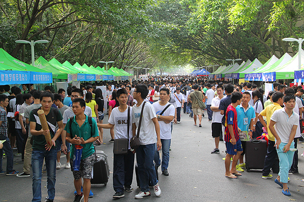7日早上,天还没大亮就有新生和家长提着厚重的行李,陆续从学校大门来到青年广场,乐竞官网工作人员和志愿者也早早等候在青年广场和大本营上迎接新生。新生由志愿者帮忙拿行李以及带其去进行一系列的新生登记手续。为了让新生与家长轻松放心,教育科学乐竞官网在大本营上为新生家长们都设置了休息点、茶水区和行李安放处。迎新期间,接待新生的志愿者们汗流浃背却洋溢着温暖的笑容,热情忙碌地为新生帮忙搬着厚重的行李,这是对新生的关爱,也是一场爱心的传递!在乐竞官网志愿者与四大机构工作人员的耐心认真配合下,新生及其家长都得到了妥帖的安排,迎新工作有条不紊的进行着。