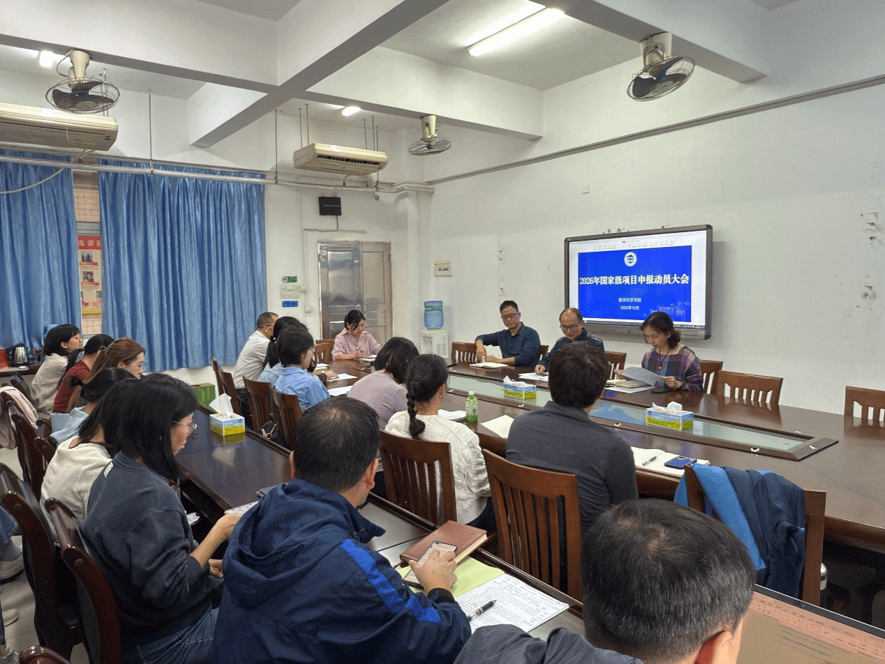 10月22日上午,乐竞官网在507会议室召开2026年国家级项目申报动员大会。党总支书记蔡振治主持会议并做动员讲话,30余名青年教师参会。