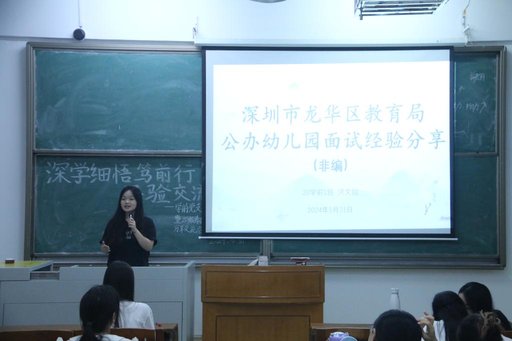 (通讯员/潘乐宜 朱雅莉 责编/何秀华)2024年5月31日晚上19:00-22:00,教育科学乐竞官网学前教育专业学生党支部在第二教学楼103教室开展了“深学细悟笃前行,经验交流促成长”学前党支部主题党日活动暨考研、就业、援疆、省赛经验分享交流会。2020级学前教育专业刘芷君等5名同学受邀进行分享,教育科学乐竞官网党委副书记、学前党支部书记何秀华出席,21级学前教育专业学生党员及各年级学生共90余人参加分享会。
