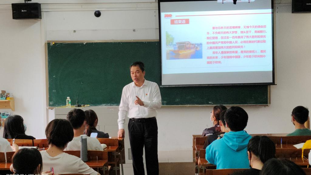 本网讯(通讯员/李哲铭 责编/何秀华)4月21日下午,肖起清副校长第一教学楼204室,为教育科学乐竞官网2021级小学教育1班全体同学开展了以“回首百年历史 践行强国战略”为主题的思政第一课。