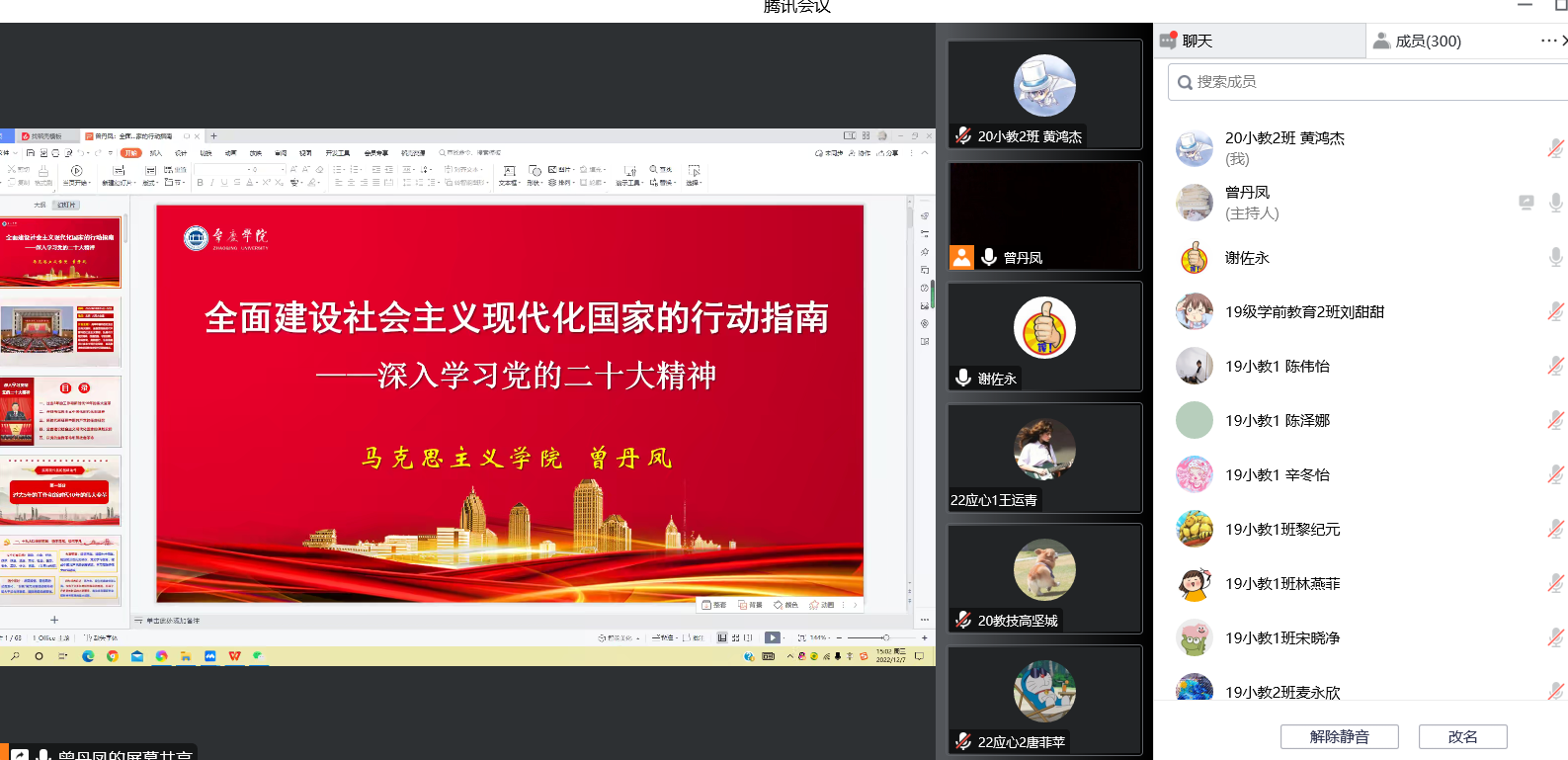 本网讯(通讯员/黄鸿杰 责编/何秀华)2022年12月7日下午,教育科学乐竞官网以线上会议的方式开展了党的二十大精神专题宣传会,由马克思主义乐竞官网曾丹凤副教授作辅导报告。教育科学乐竞官网党委书记谢佐永主持会议,教师党员、学生党员及学生代表等近300人参与本次宣传会。