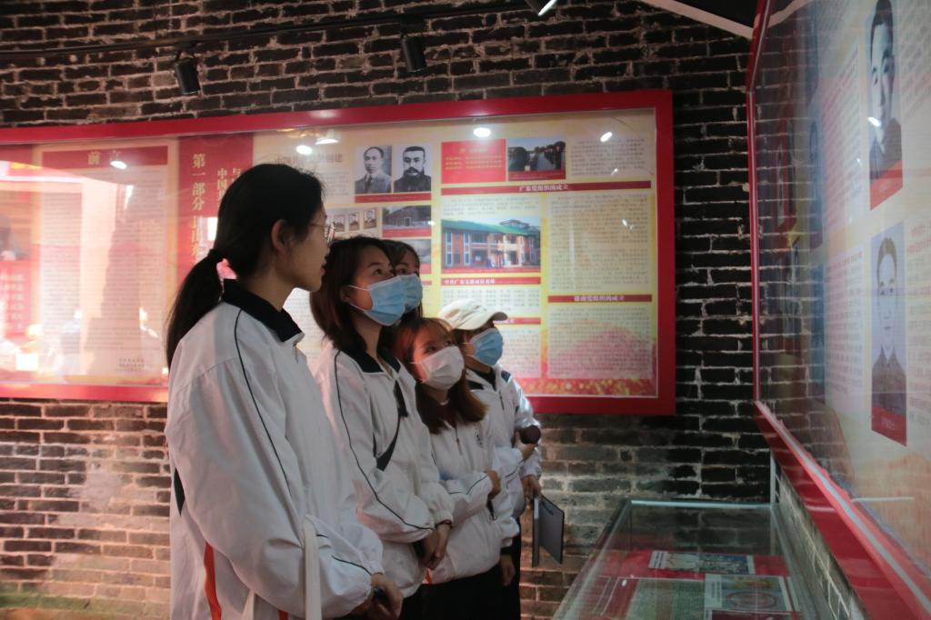 在红色之旅的第二站,教科院党员师生一行来到位于郁南县桂圩镇的郁南(桂河)革命纪念馆。大家通过一帧帧老照片,跟随着讲解员的解说,重温了“三罗”解放战争和“四一八”武装起义的艰苦卓绝的峥嵘岁月,了解李镇靖、李荣欣等爱国烈士的事迹,深刻体会到了革命先烈们英勇无畏、大义凛然、保家卫国的英雄气概和大无畏精神。