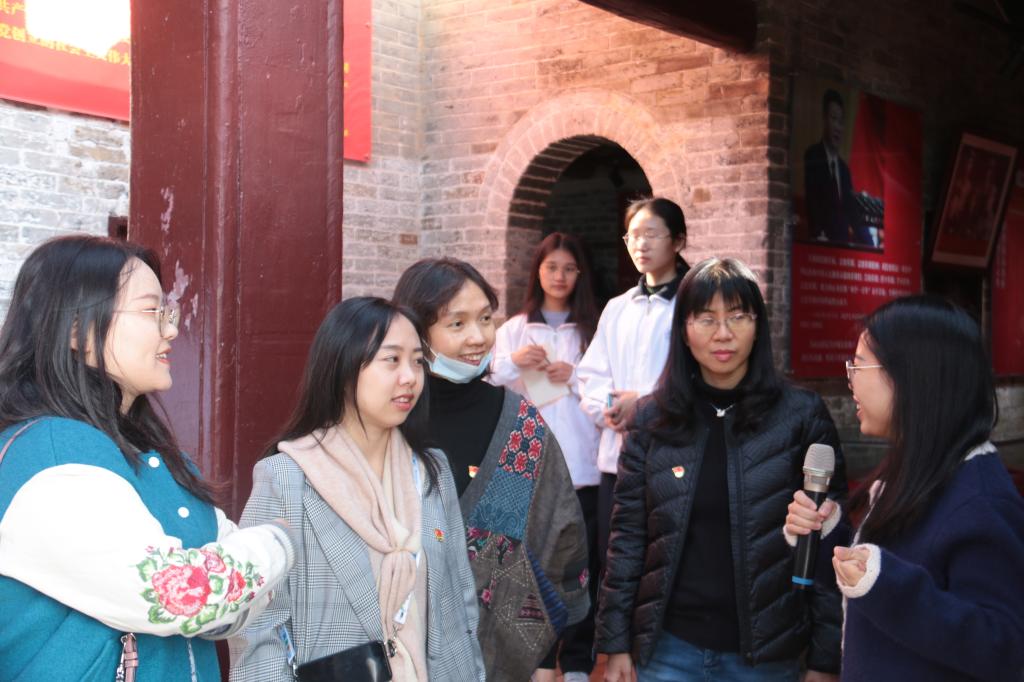 在革命纪念馆前,全省“双创”样板支部——应用心理学系教师党支部全体教师党员、新入党的学生党员分批在谢佐永书记的带领下,重温入党誓词。