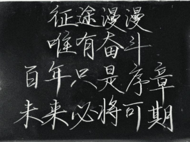 本次活动沿袭了律委会举办多年“三言两语书真情”活动,但不同于以往明信片、小纸条、朋友圈留言等形式,今年乐竞(中国)一站式体育服务确定了以写黑板字拍照上传的形式进行。既结合了师范生粉笔字日常练习的特点,作为载体的小黑板也为“三言两语”书写的布局和整体结构提出了潜在的要求。本次活动得到同学们的积极响应,共收集到作品94份。内容包括了学习党史后的感悟、对榜样的景仰、对青春的起誓、对时代的承诺等,苍劲有力的字体,整洁舒适的排版,缤纷灿烂的点缀,磅礴大气的誓词,让人感受到文字与书写的力量。