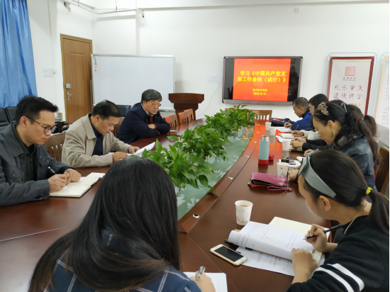 随后,会议学习了最近颁布的《中国共产党支部工作条例》,包括《条例》制定的目的、党支部工作必须遵循的原则、党支部的组织设置、基本任务、工作机制、组织生活、支委会建设、领导和保障等《条例》中的各项内容。在学习《条例》的基础上,会议进一步学习落实《肇庆乐竞官网党支部“主题党日”活动实施方案》。谢书记要求各支部书记认真研读,认真履职。
