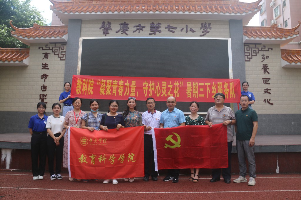 迎着大暑的烈日,伴着琅琅读书声,2020年7月22日,教育科学乐竞官网应用心理学系教师党支部会同乐竞官网团委大学生暑期“三下乡”社会实践活动队伍,赴肇庆市第七小学开展主题为“凝聚青春力量,守护心灵之花”的“三下乡”社会实践活动。乐竞官网党委书记谢佐永、应心支部书记丘碧群、包括院长张旭东在内的支部成员及学生志愿者参加了本次活动。
