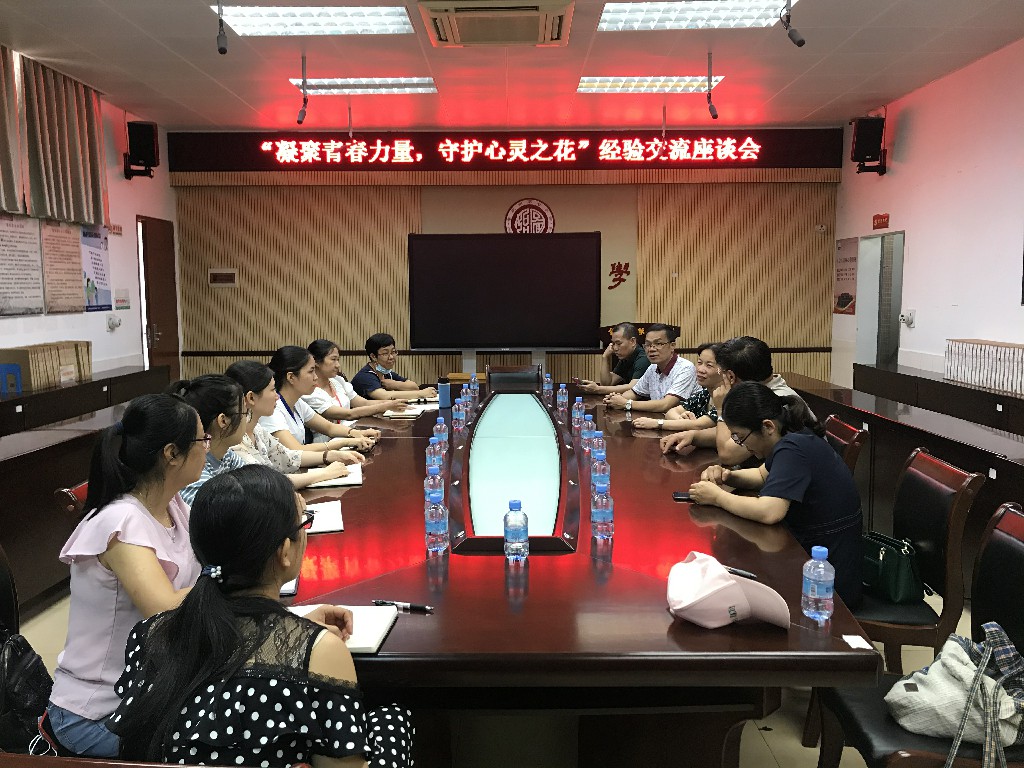 “凝聚青春力量,守护心灵之花” 心理健康教育经验交流座谈会在七小会议室进行。负责七小德育工作的朱主任和部分班主任,以及应心支部老师参加了此次交流。谢书记陪同出席。