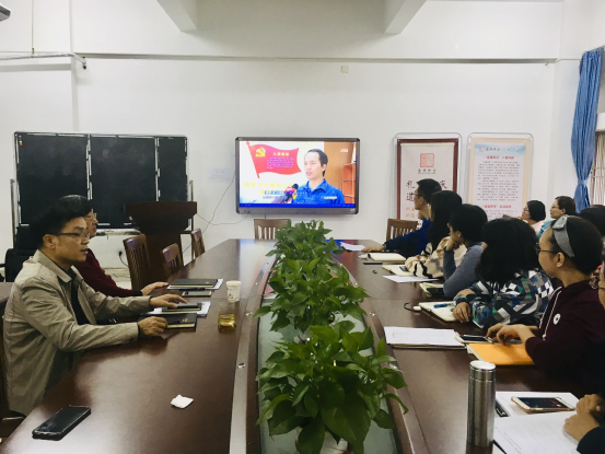 最后,教工党员观看了关于学习习近平总书记视察广东重要讲话精神的网络视频材料。