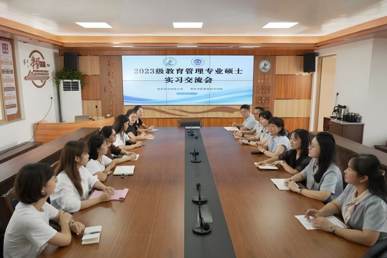 9月11日,教育科学乐竞官网与肇庆中学附属小学联合举办的2023级教育管理专业硕士实习交流会在肇庆中学附属小学顺利召开。本次会议聚焦教育硕士实践能力培养与实习管理机制建设。肇庆中学附属小学校长张建华等学校领导班子、教育科学乐竞官网副院长曾苗苗,教育硕士校内导师代表及全体2023级教育管理方向硕士研究生共同参会。