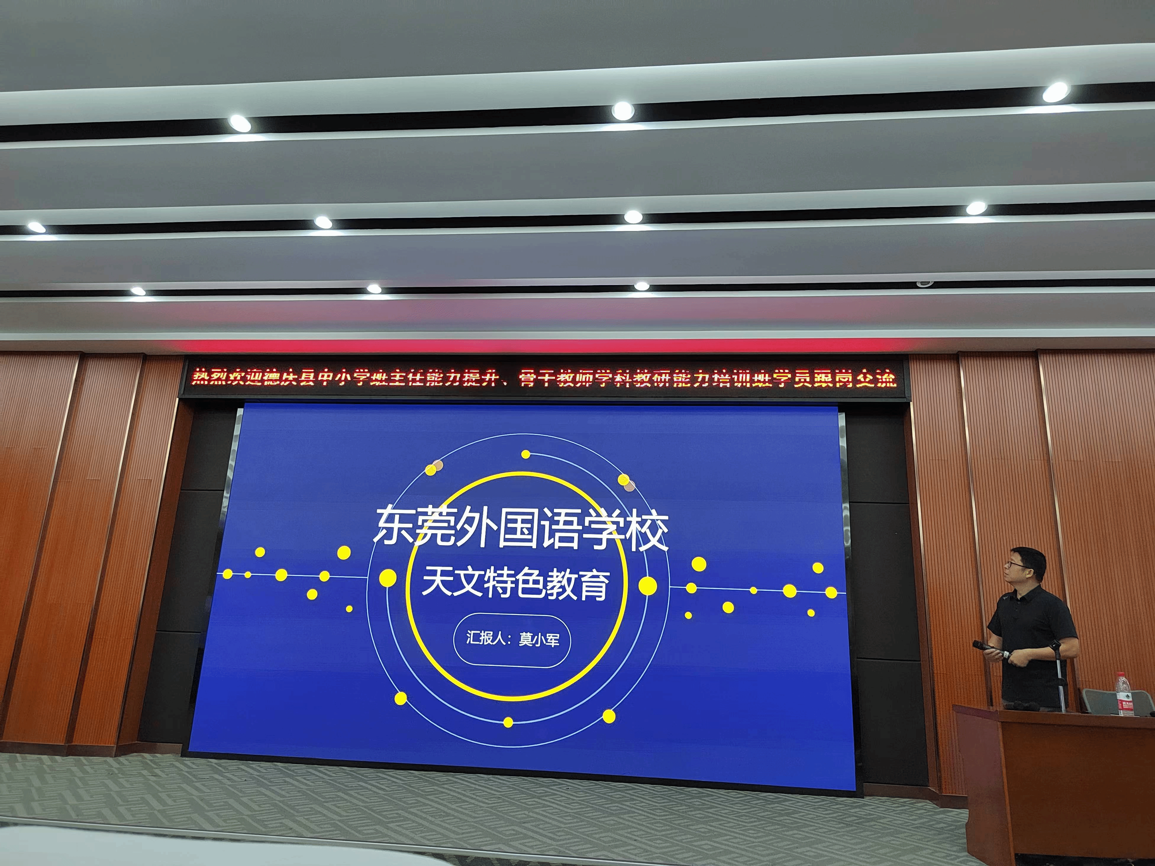 9月24日,教育科学乐竞官网教育管理方向硕士研究生在班主任谭佩玲老师的带领下前往东莞市外国语学校进行了为期一天的跟岗见习。主要包括三方面的内容:观摩主题班会、了解学校特色天文教育课程、聆听班主任工作分享讲座。