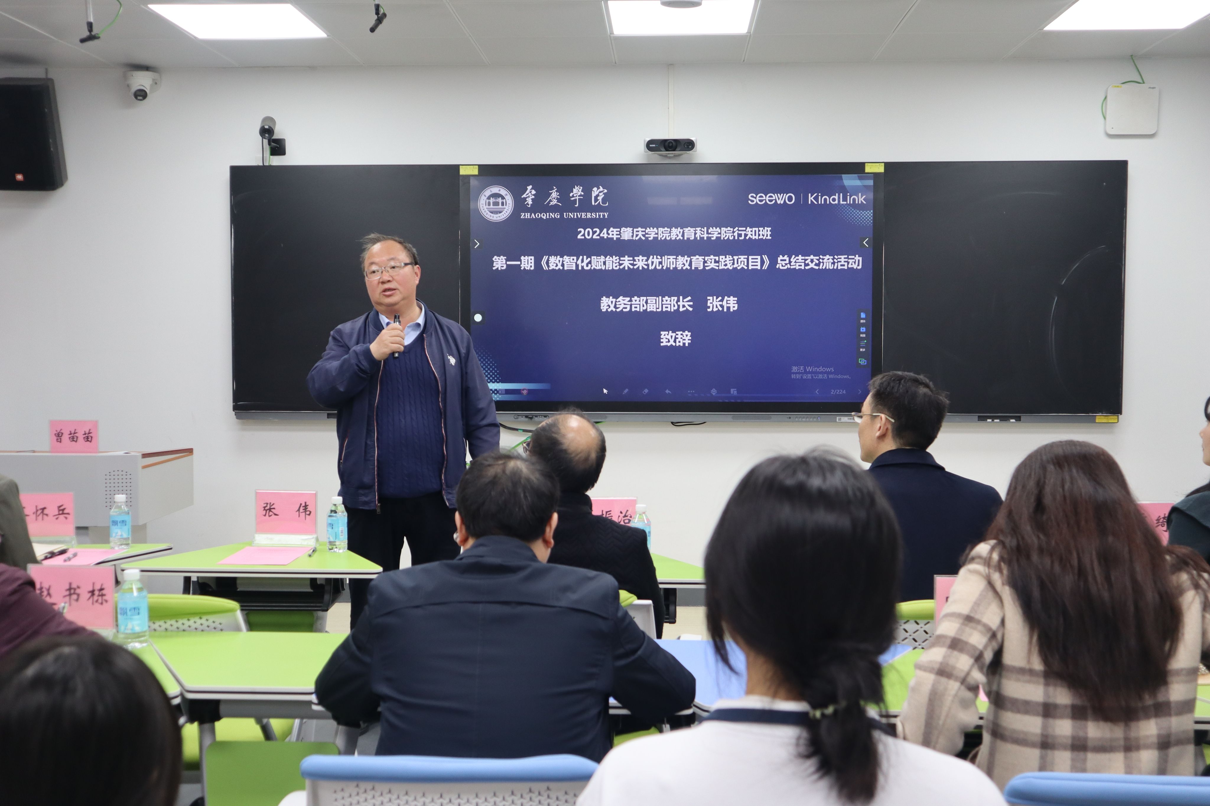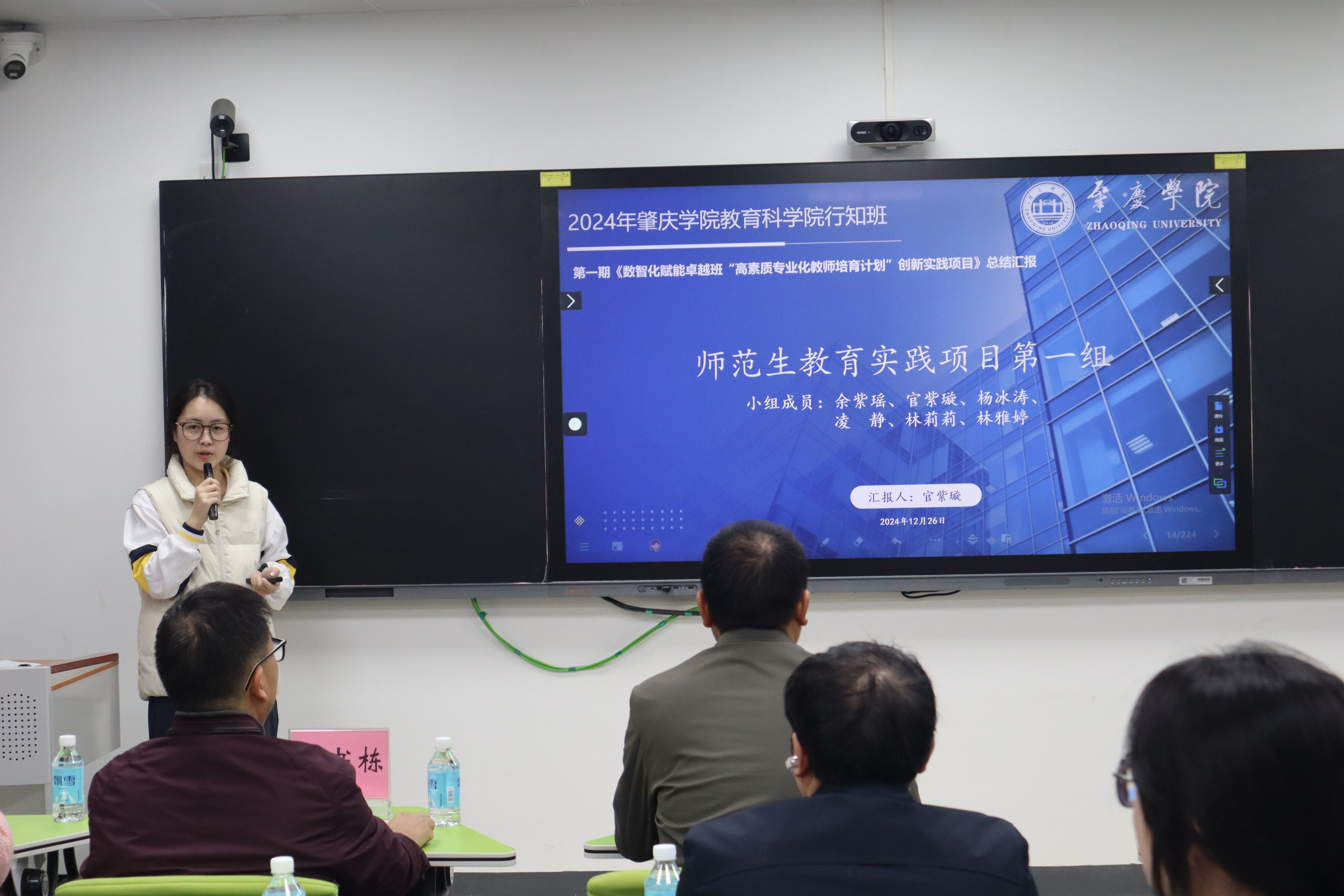 (通讯员杨灵燕 赵珍芩)12月26日下午,乐竞官网卓越教师“行知班”举行了第一期《数智化赋能未来优师教育实践项目》总结汇报会。教务部副部长张伟、教育科学乐竞官网党委书记蔡振治、院长文雪、副院长黄华、肇庆市教师发展中心教研员齐怀兵、肇庆中学附属小学德育处副主任林秀绮,企业教学顾问袁晶、系主任、乐竞官网导师代表、班主任,以及行知班全体学员共同出席本次汇报会,会议由副院长曾苗苗主持。