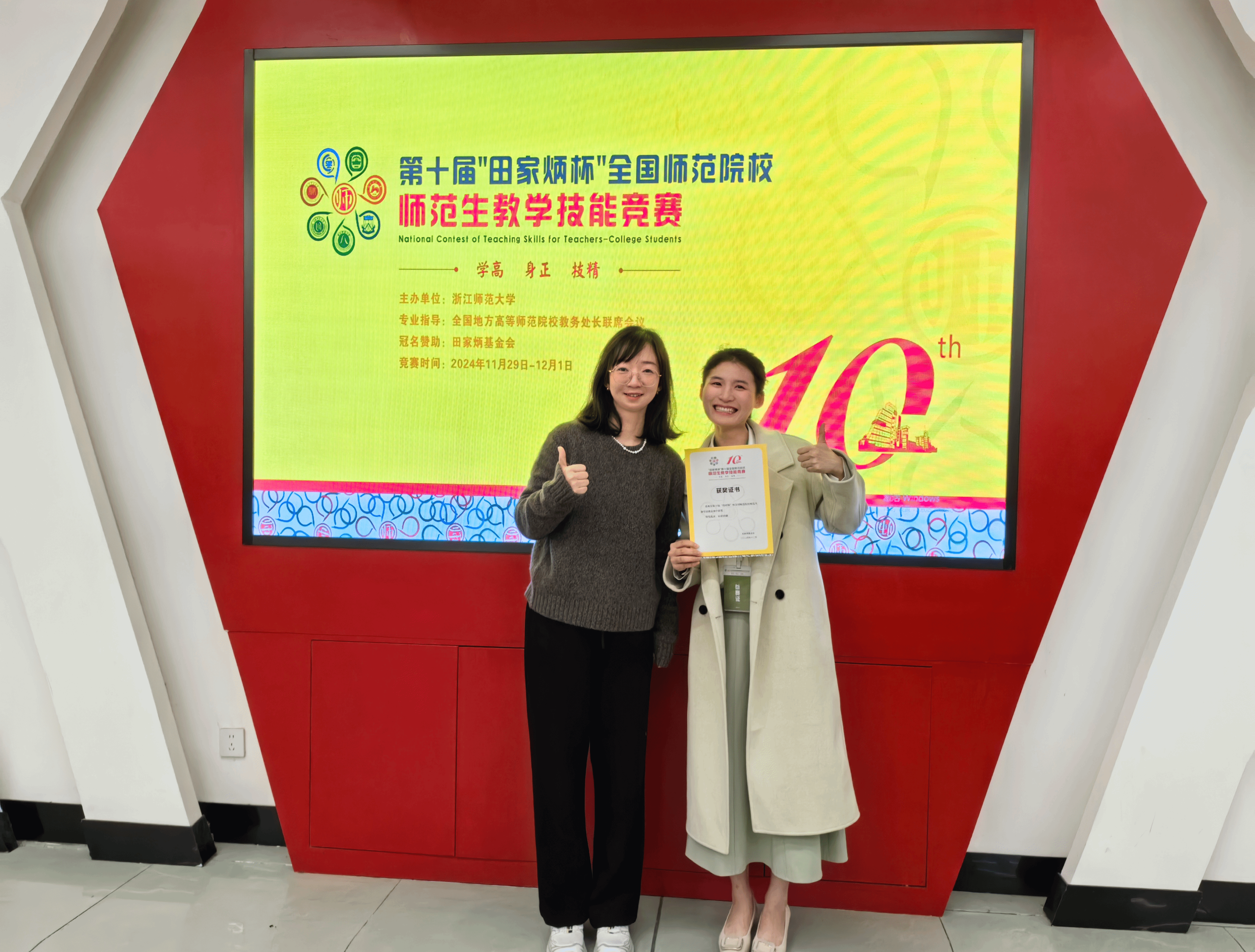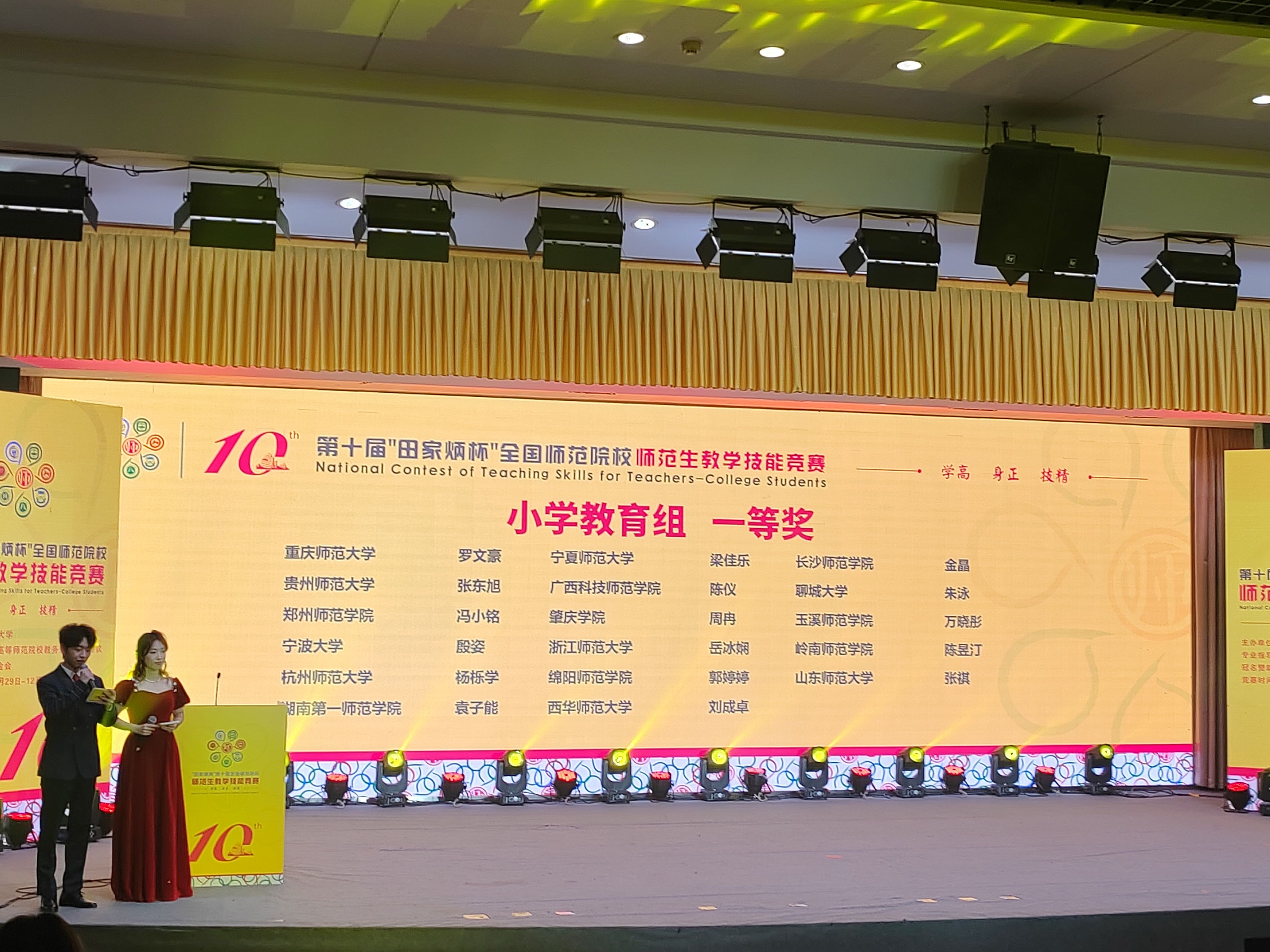 据悉,“田家炳杯”全国师范院校师范生技能竞赛是国内顶级、具有极高知名度和影响力的师范生教学技能竞赛。由“田家炳”基金会冠名赞助,并受全国地方高等师范院校教务处长联席会议专业指导,浙江师范大学承办。该竞赛作为国内层次最高、规模最大的师范生教学技能竞赛之一,是纳入本科状态数据库填报的国家级竞赛项目,具有极高的权威性和影响力。本届比赛自2024年9月启动,分初赛和决赛两个阶段。初赛通过视频比赛的形式进行。本届大赛首先经过严格的校内选拔,共计250所院校1831人竞逐比赛,涵盖了小学教育、汉语言文学、数学、英语等多个师范专业共计11个组别。经过初赛的激烈比拼,共有来自全国各高校共520名选手进入决赛阶段。我校共有包括周冉同学在内的5位同学进入决赛。