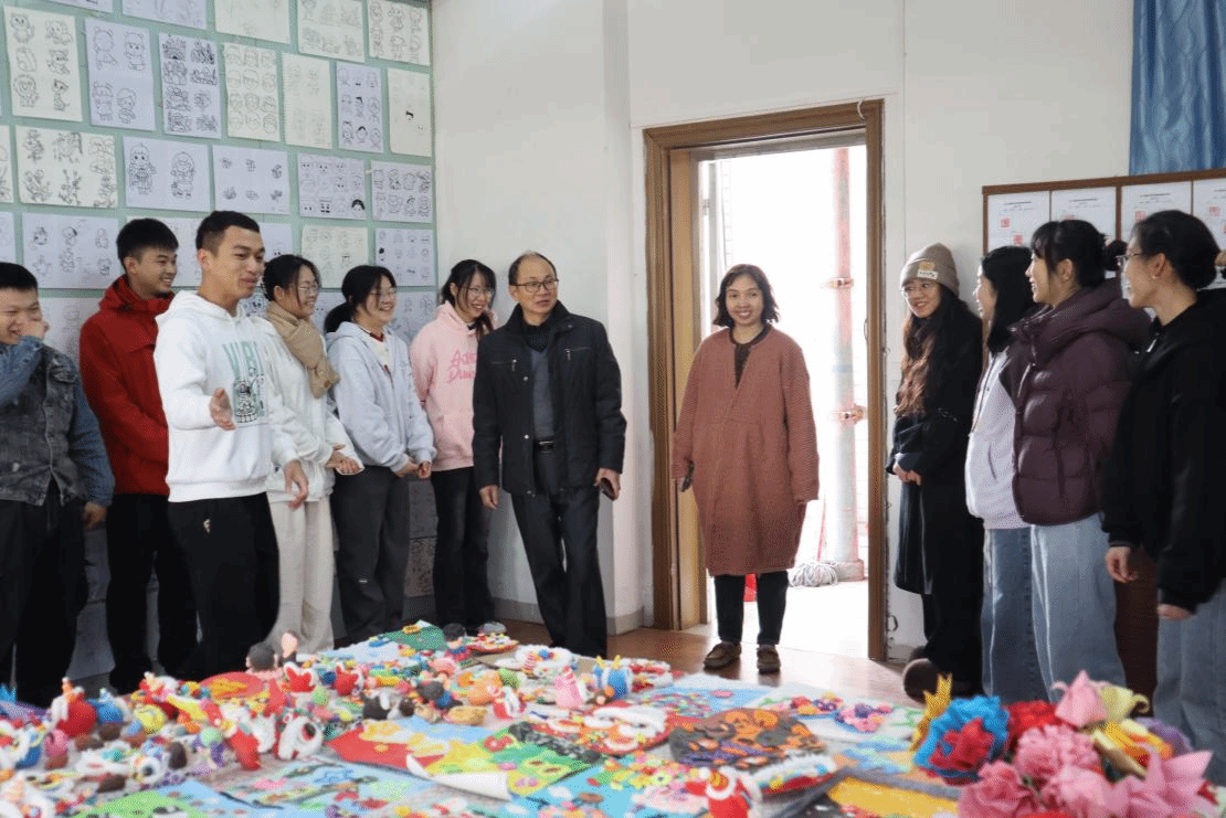 教育科学乐竞官网党委书记蔡振治,党委副书记何秀华,前党委书记谢佐永,乐竞官网辅导员陈慧妍、刘瑞雪,2022级学前教育3班班主任陈建茹以及2022级学前教育专业学生出席本次展览。