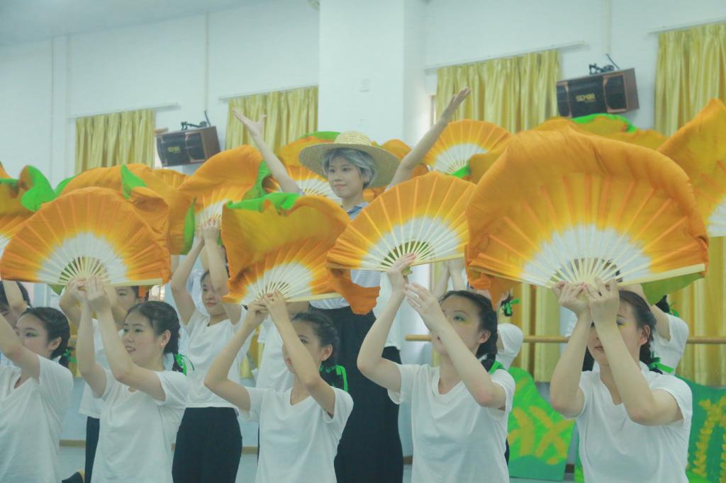 本次舞剧由雷洁老师指导,以“禾下筑梦”为主题,缅怀杂交水稻之父袁隆平。在舞剧中,同学们分饰了小米粒、小朋友、禾苗等角色,用儿童舞蹈动作分别演绎了小朋友因浪费粮食与小米粒起冲突,被带进时光隧道;时光回溯,袁隆平带领团队在稻田里辛勤科研,用坚持和汗水研发出杂交水稻;回到现实,小朋友们意识到粮食的珍贵,与小米粒和好,并一起舞蹈缅怀袁隆平爷爷这三幕剧情。同学们在十五分钟的舞蹈剧幕中全情投入,把小朋友的调皮灵动、对粮食和大自然的热爱和敬畏、对袁爷爷的敬爱,进而上升到“粒粒皆辛苦”的承诺展现得淋漓尽致,台下的观众都深深沉浸其中。