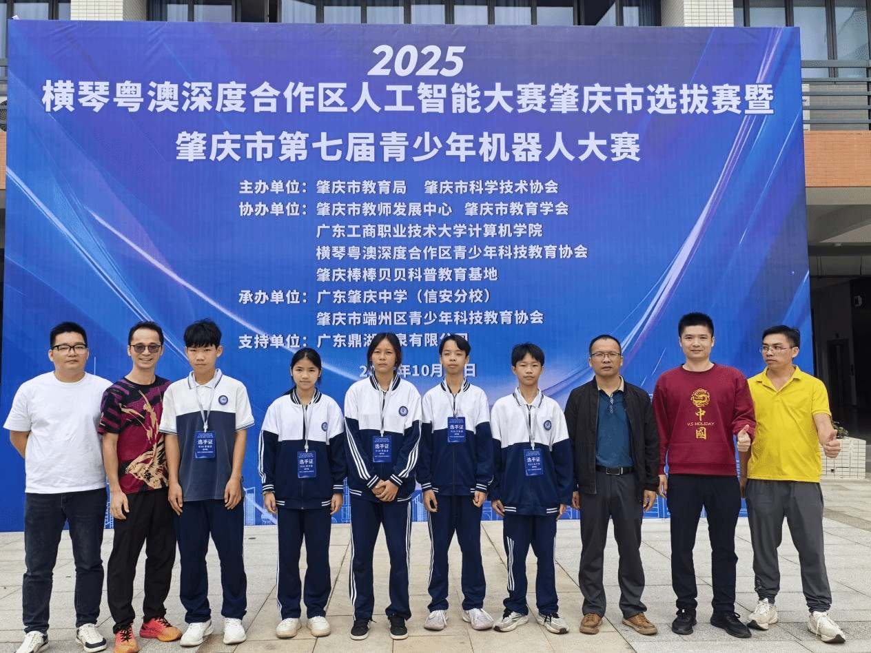 【本网讯】为深入贯彻落实“三所学校”和县中质量提升工作部署,教育科学乐竞官网在对口帮扶怀集县工作中精准施策,积极打造科创教育特色。近日,帮扶工作结出硕果——在“2025横琴澳深度合作区人工智能大赛市选拔赛暨肇庆市第七届青少年机器人大赛”中,怀集县马宁初级中学五名参赛学生表现优异,斩获两个一等奖、三个三等奖,成为教育科学乐竞官网帮扶成效的生动体现。