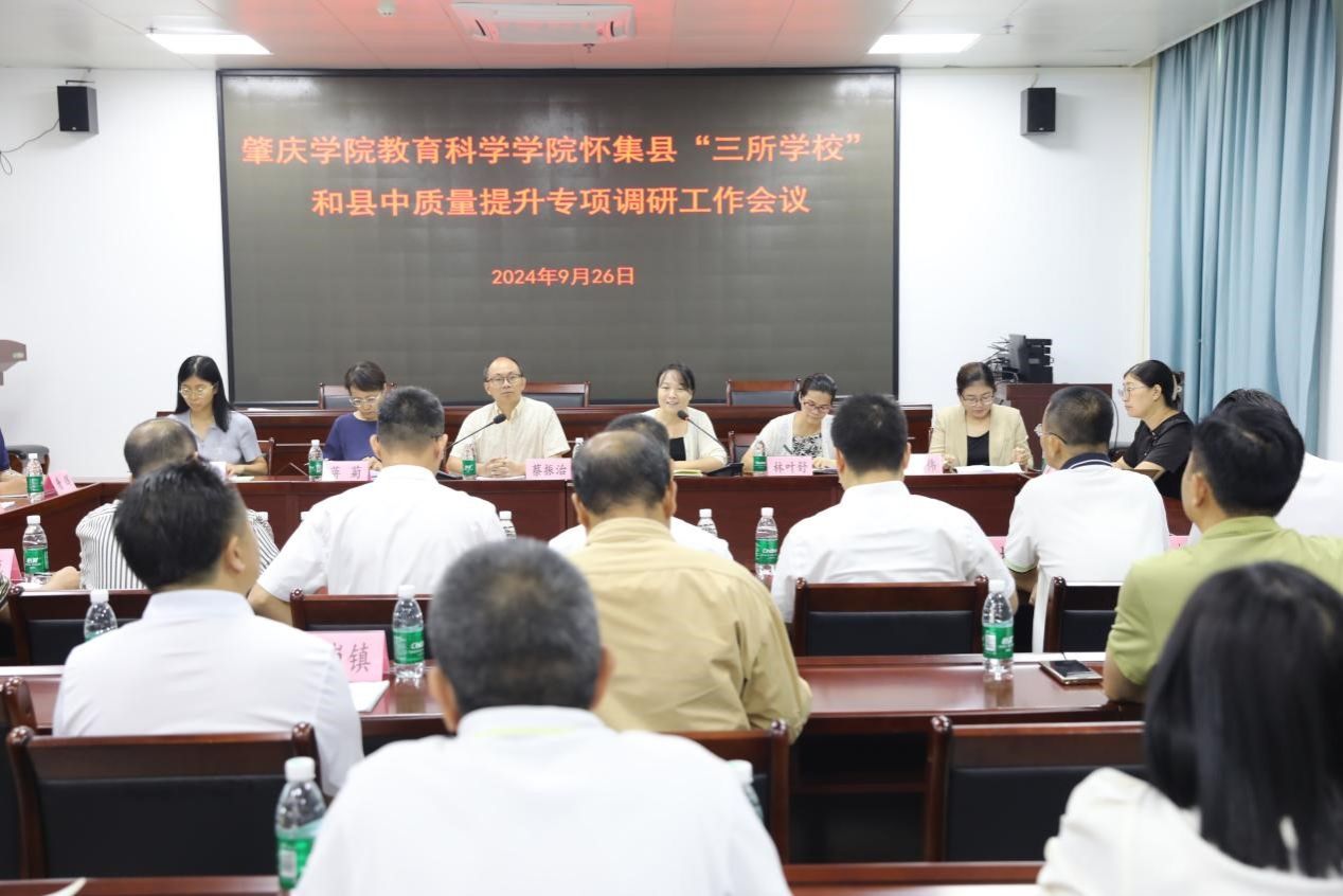 2024年9月26日,教育科学乐竞官网领导与文学与传媒乐竞官网领导、教授与专家一行18人到怀集开展“三所学校”和县中质量提升专项调研工作。怀集县教育局副局长石棣飞、县教师发展中心主任、19个乡镇(街道)分管教育领导,县教育局相关股室负责人,各公办高中校长,乡镇中学、中心小学(学校)校长共80多人参加调研会。