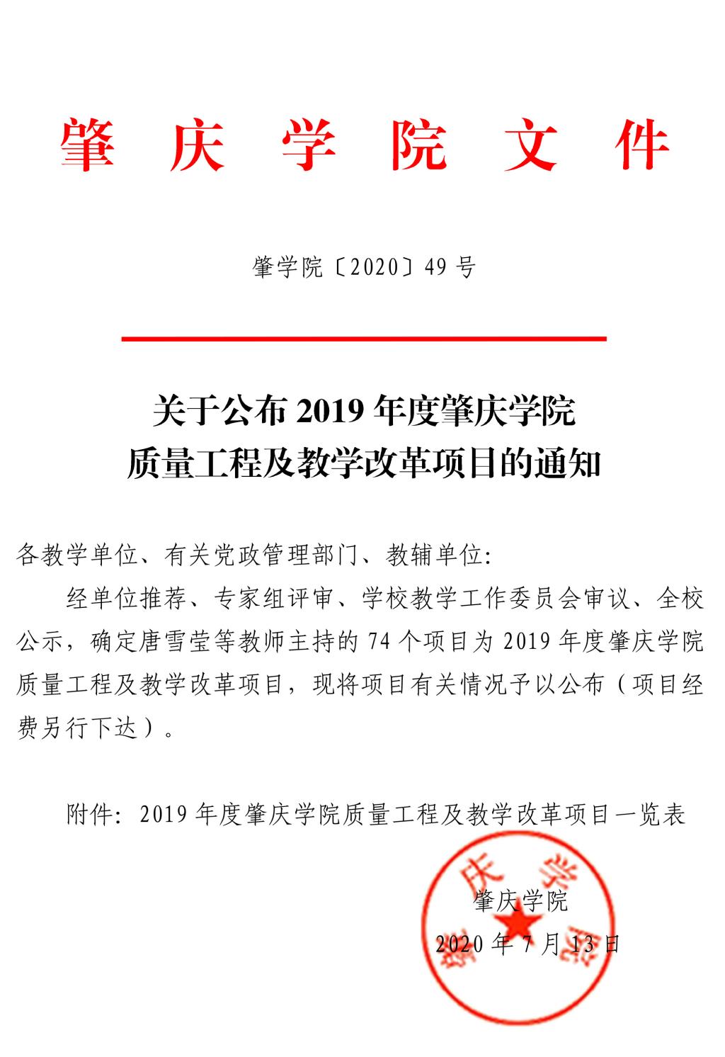 肇乐竞官网〔2020〕49号关于公布2019年度肇庆乐竞官网质量工程及教学改革项目的通知.pdf
