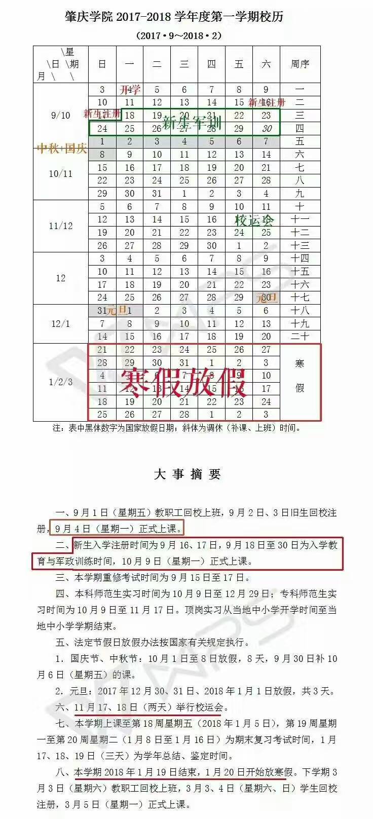 肇庆乐竞官网2017-2018学年度第一学期校历