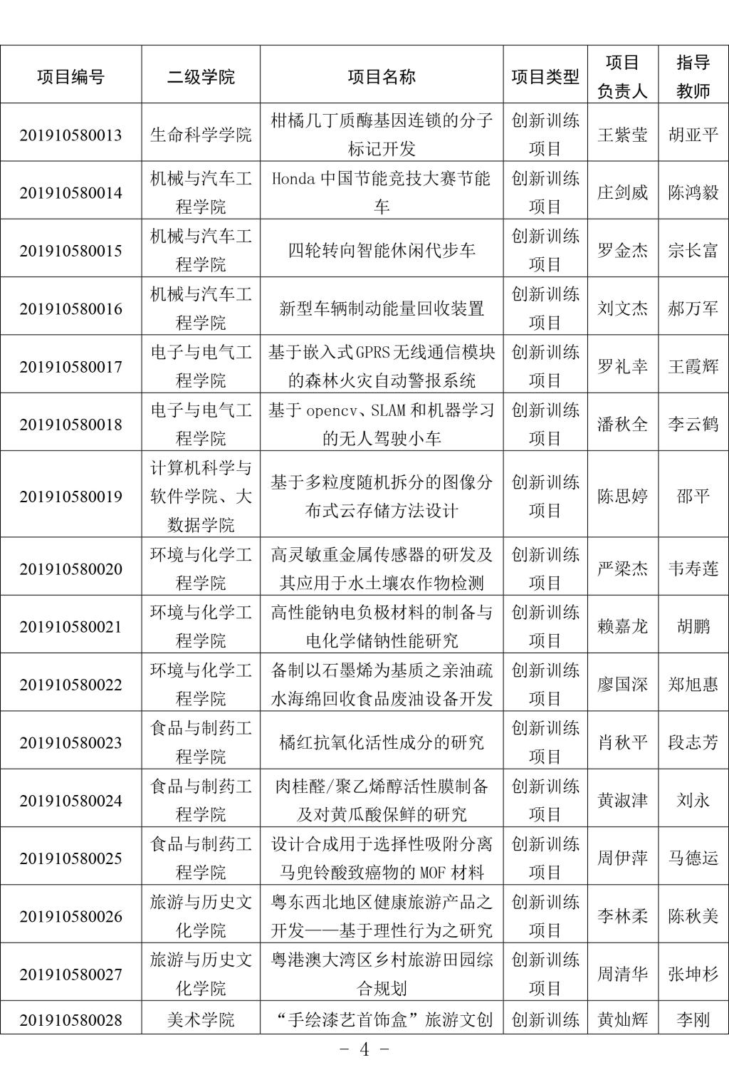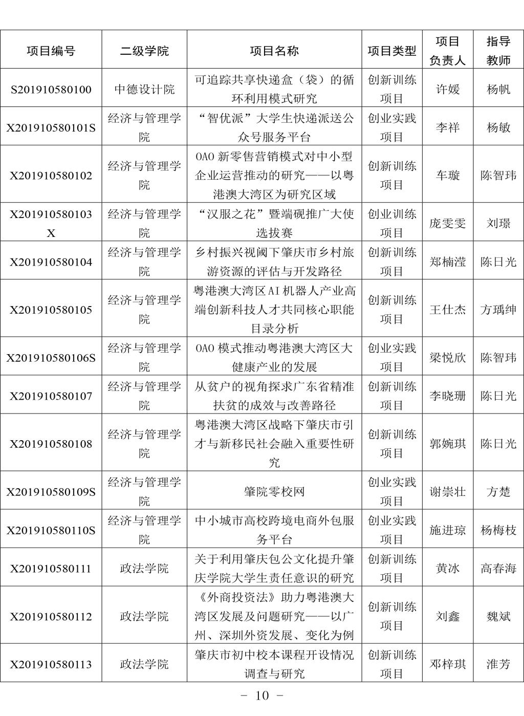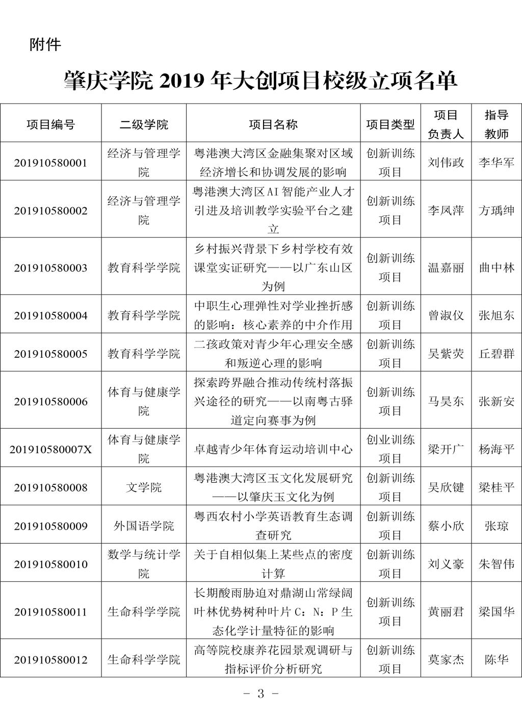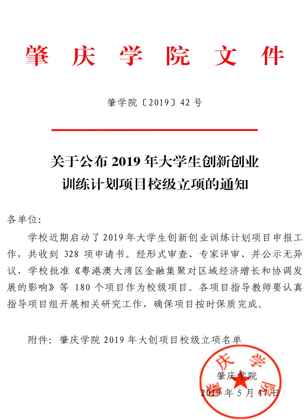 肇乐竞官网42号肇庆乐竞官网关于公布2019年大学生创新创业训练计划项目校级立项的通知