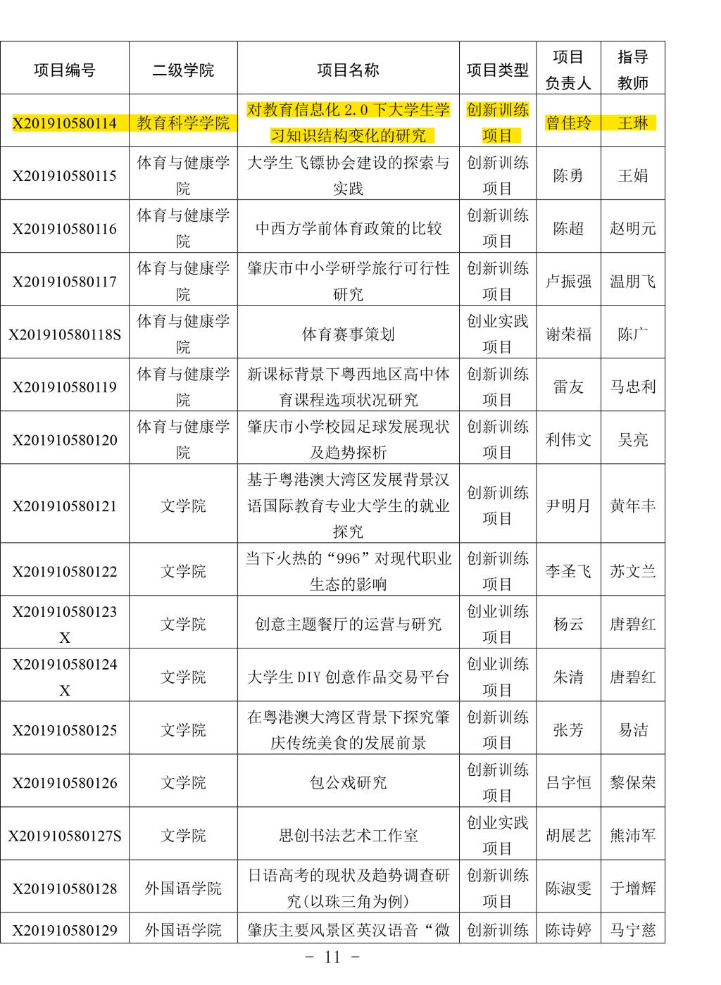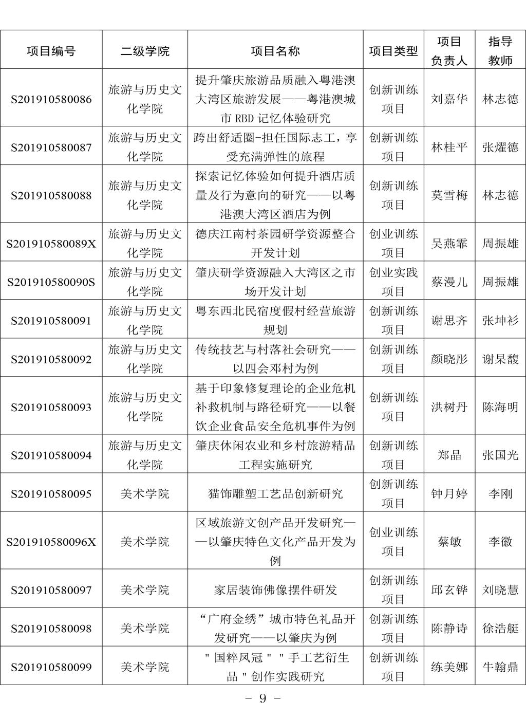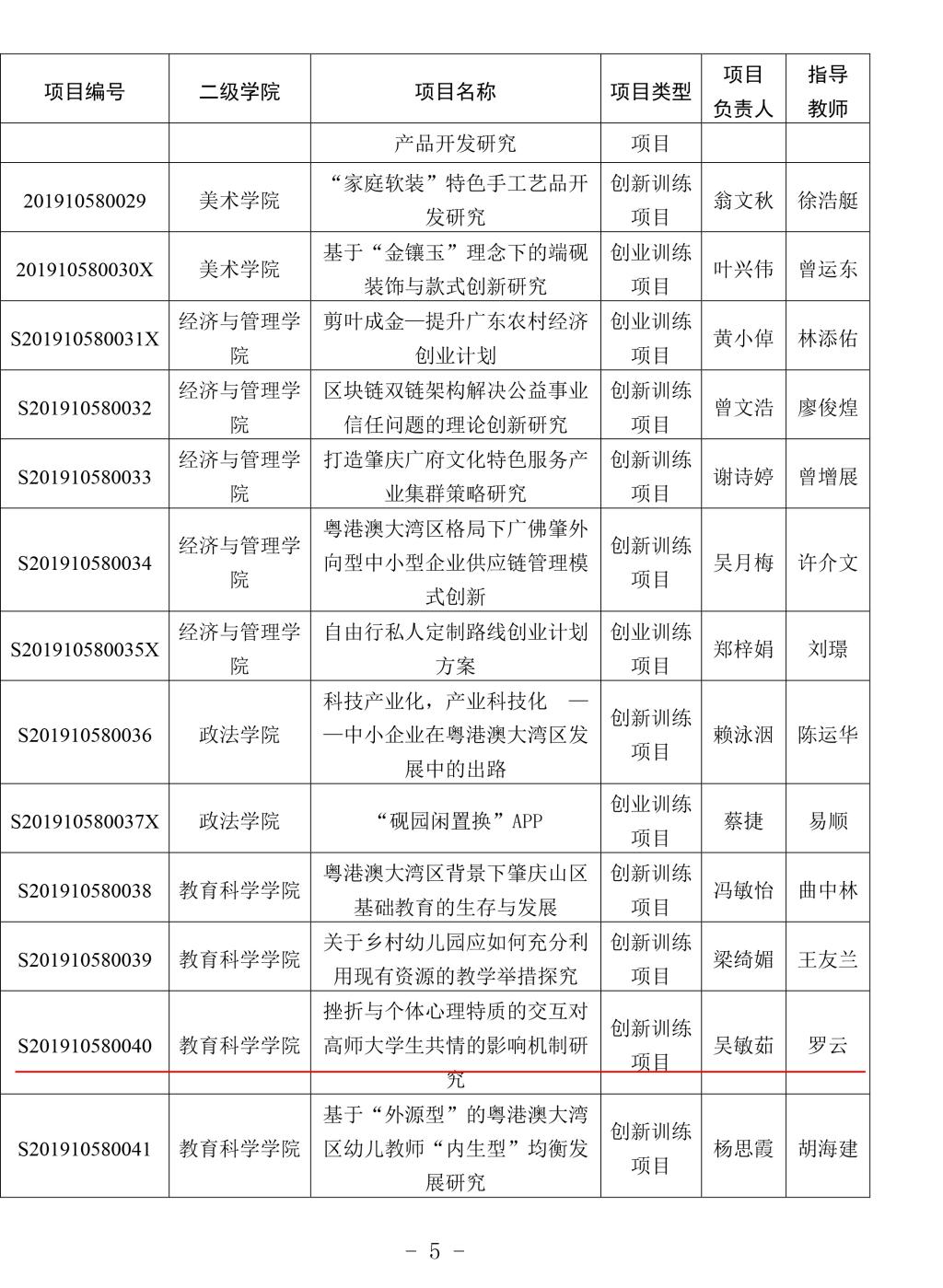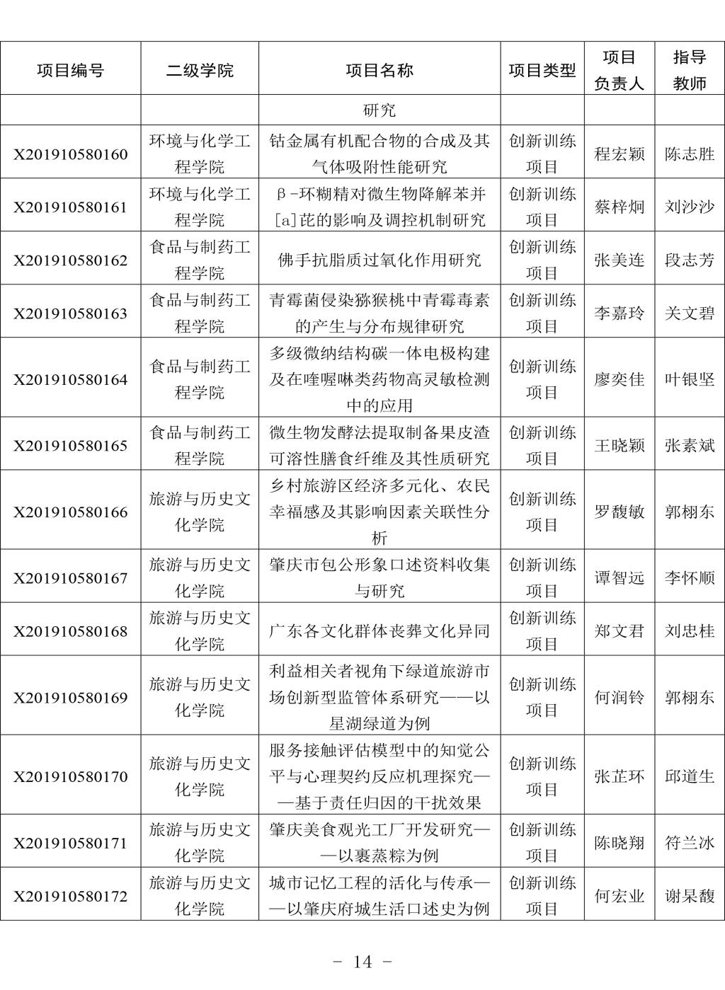 肇乐竞官网42号肇庆乐竞官网关于公布2019年大学生创新创业训练计划项目校级立项的通知