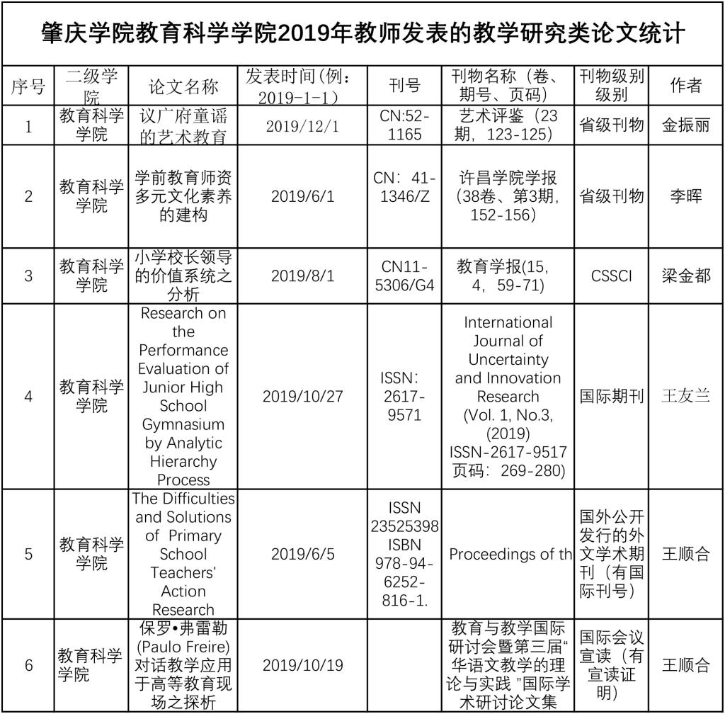 乐竞官网2019年教师发表的教学研究类论文统计.pdf