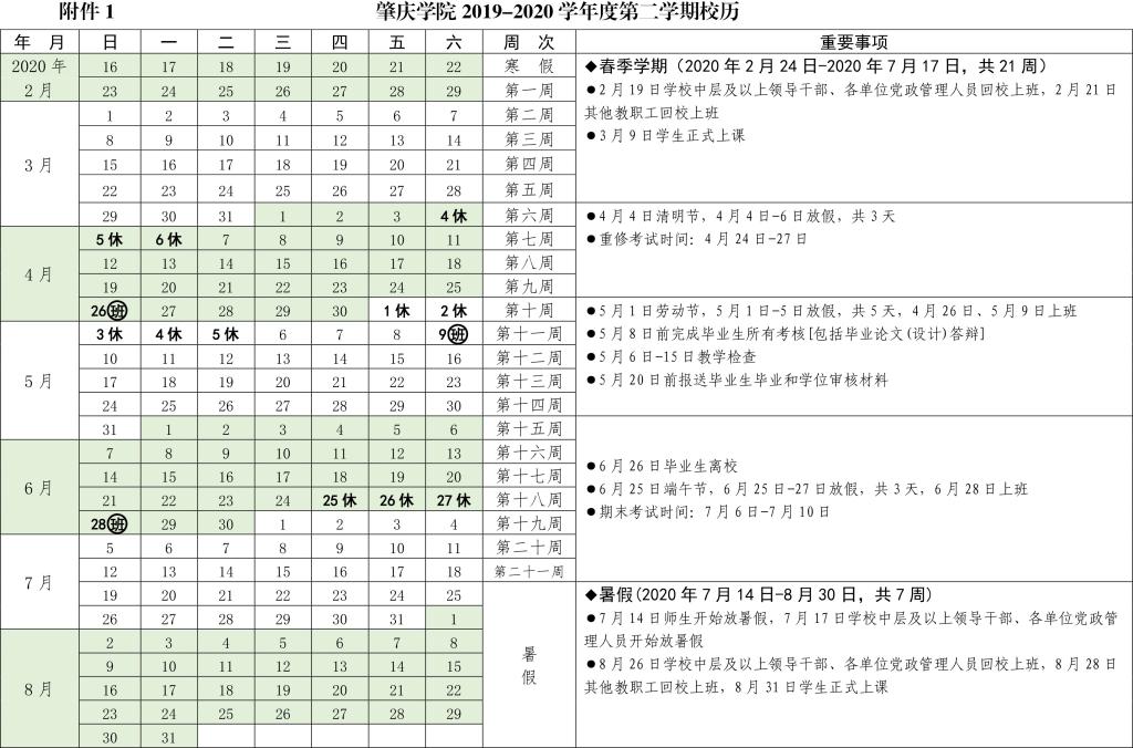 肇庆乐竞官网2019-2020学年度第二学期校历